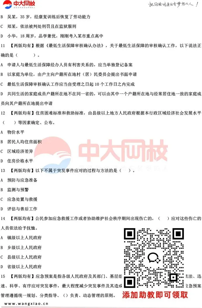 说明:篇幅有限,以上仅是前3页,需要的同学可以联系助教老师领取剩余的中级社工法规入学自测卷。