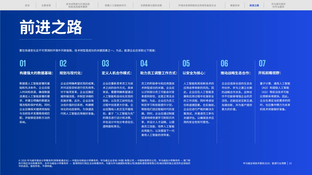 AI助力能源转型:灵活电网管理、可再生能源整合、表后服务优化是关键技术路径。