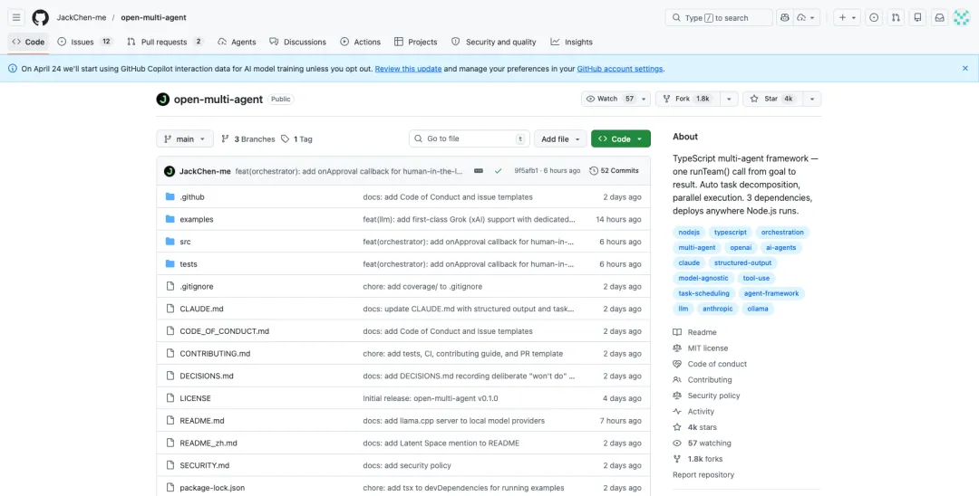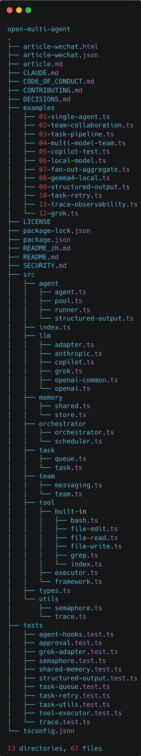 从工程实践的角度看,open-multi-agent 是一个干净的 TypeScript 多 Agent 框架。代码量不大,没有过度抽象,每个模块职责清晰。如果你正在考虑在 Node.js/TypeScript 技术栈里搞多 Agent 系统,不论是直接用还是参考它的设计,都值得花时间读一读源码。
