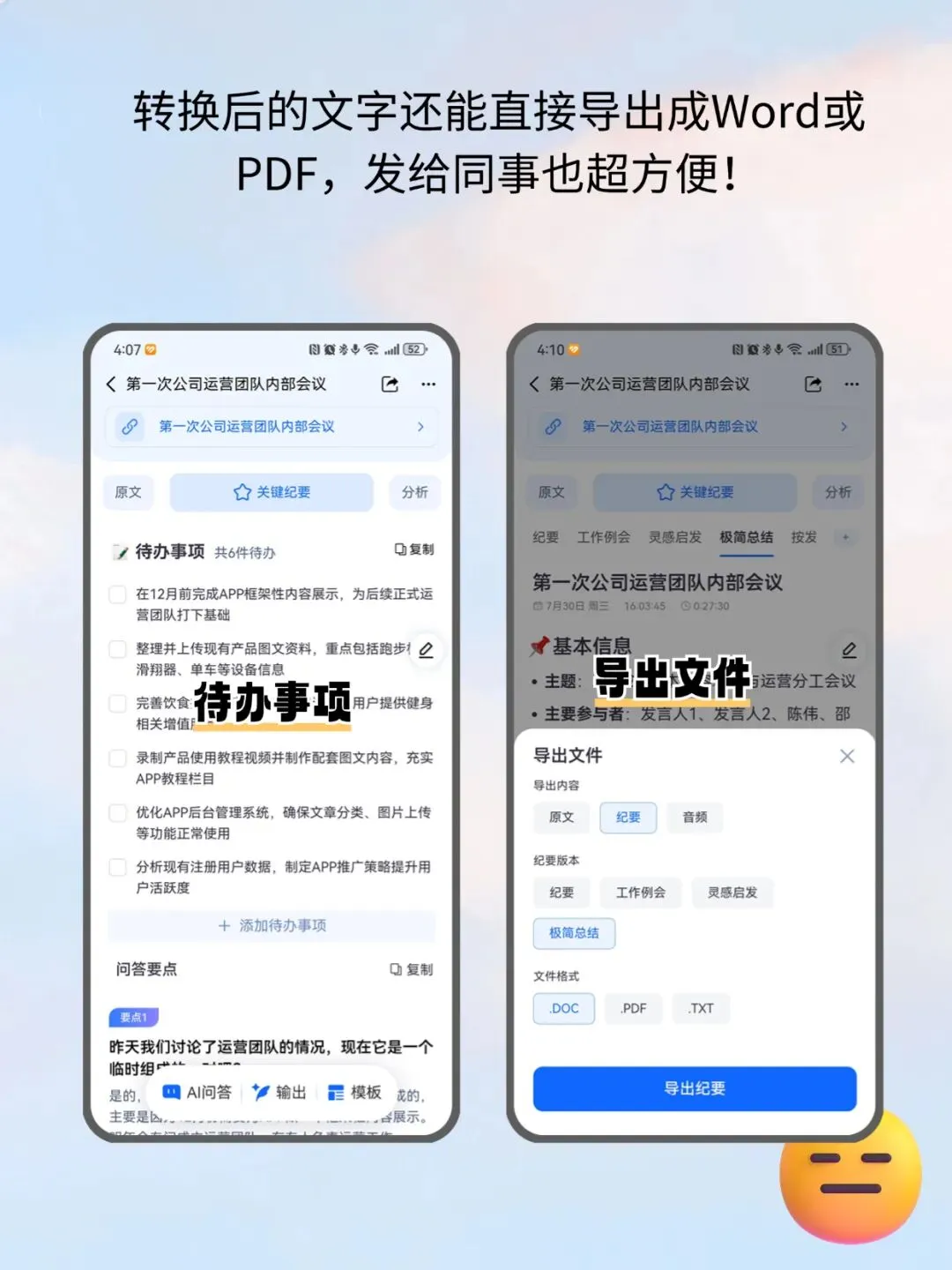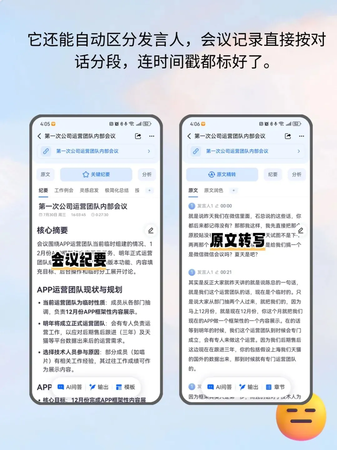 转写后的纪要花30秒过一遍就行,不用逐字改,毕竟偶尔有特别偏的行业黑话可能识别错,改一下关键词就好,总比你整理俩小时强。