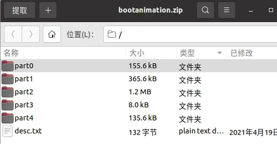 准备desc文件和part图片,打包成bootanimation.zip (必须要以存储方式打包)