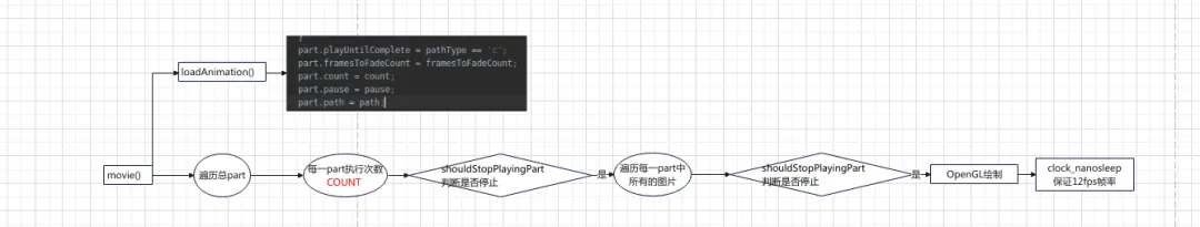 如下的一个desc文件,动画执行完part0后,循环执行part1,直到shouldStopPlayingPart->checkExit()检测到wms设置动画退出。