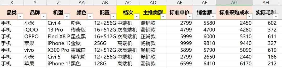【基础数据】包括:实际毛利、手机品牌等核心信息
