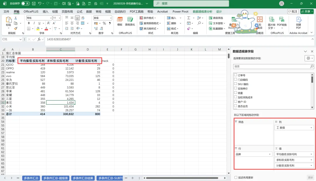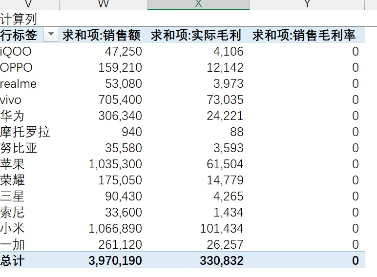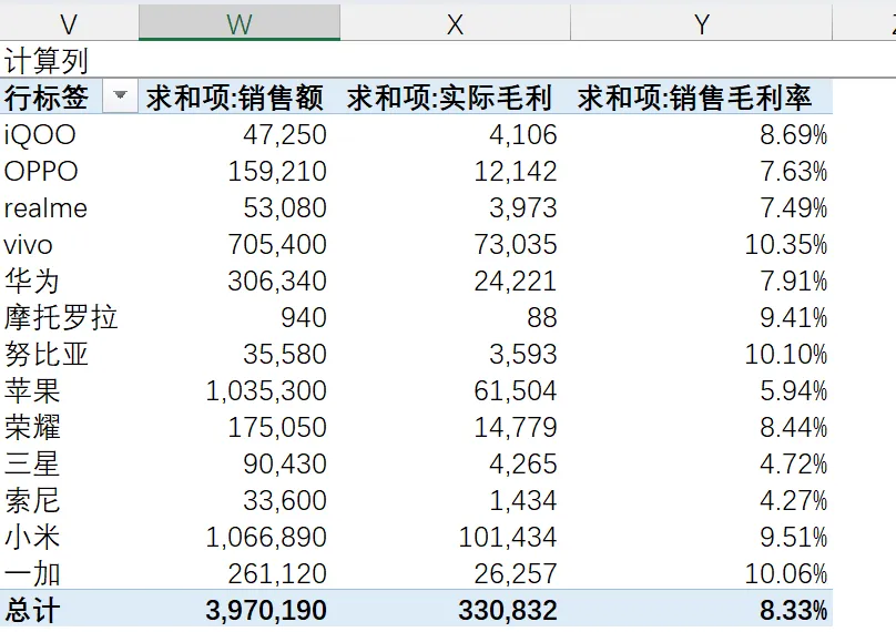 【案例】在手机销售数据对应的透视表中新增毛利率指标