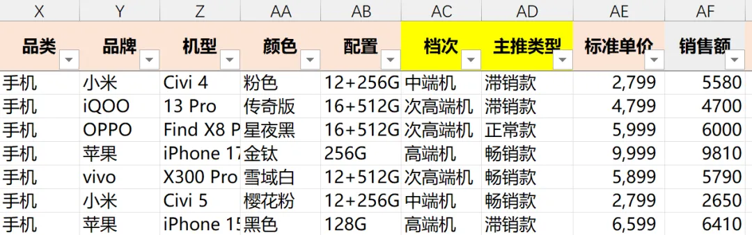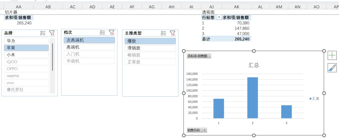 对应:华为+苹果品牌 & 高端机 & 爆款+畅销款+滞销款 的合计销售额
