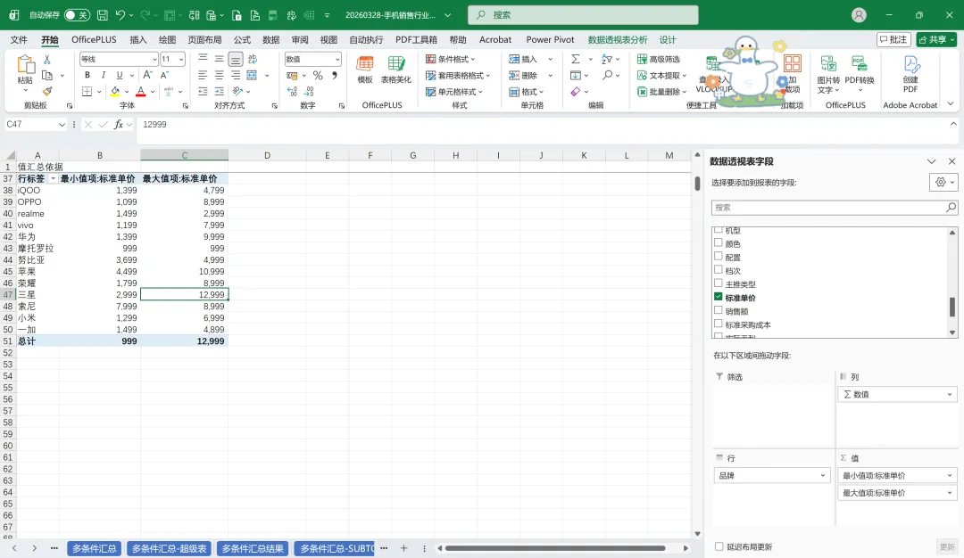【案例】计算手机销售数据中标准单价的最大值和最小值,以分析价格带宽