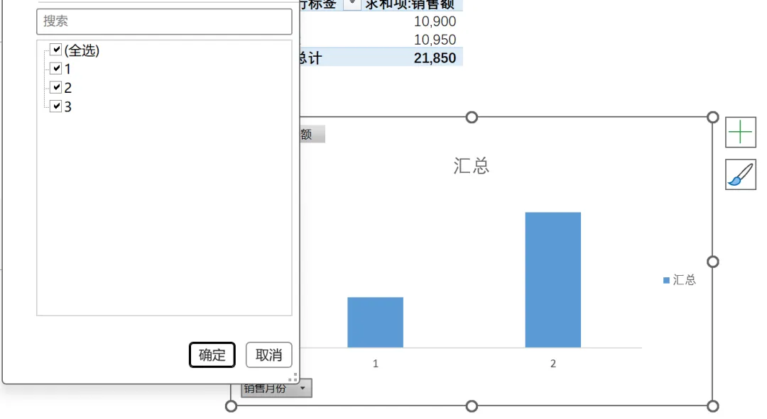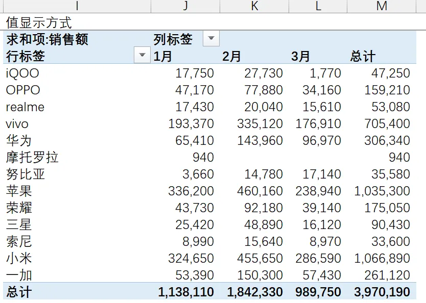 【结果】可以看到1-3月销售数据在同一个数据透视表显示