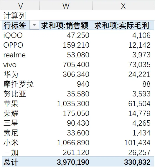 【案例】计算不同手机品牌毛利额的平均值,衡量“平均一单赚多少钱”