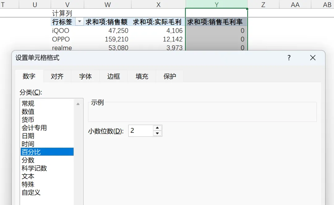 Step3:修改毛利率对应的单元格格式