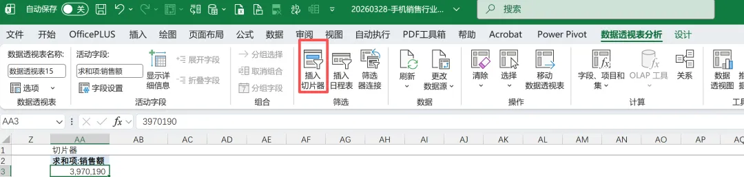 Step2:点击数据透视表任一单元格,再在数据透视表分析选项卡点击“插入切片器”
