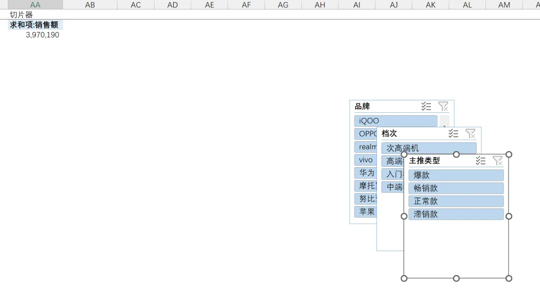 会直接生成对应的切片器,拖动鼠标摆在合适的位置即可