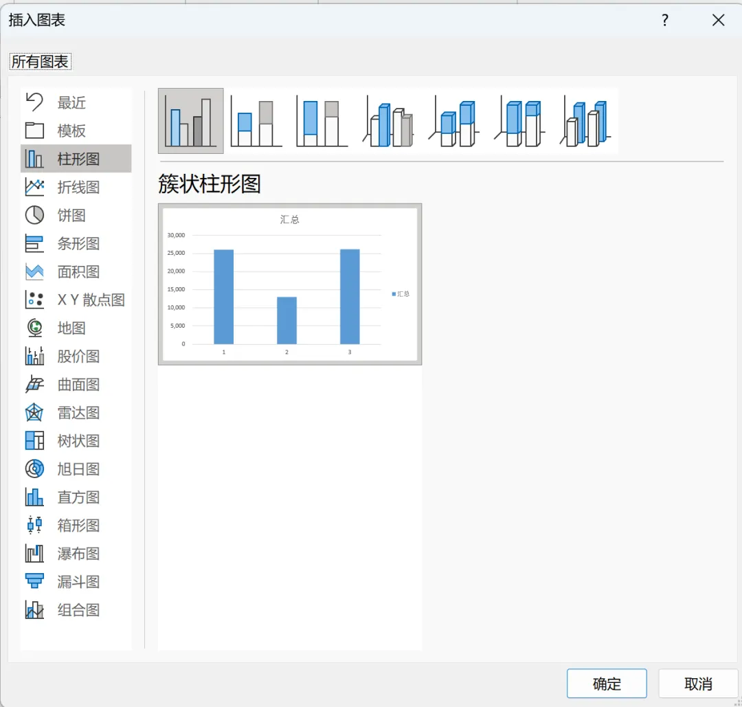 Step2:选择合适的图表,如:簇状柱形图等