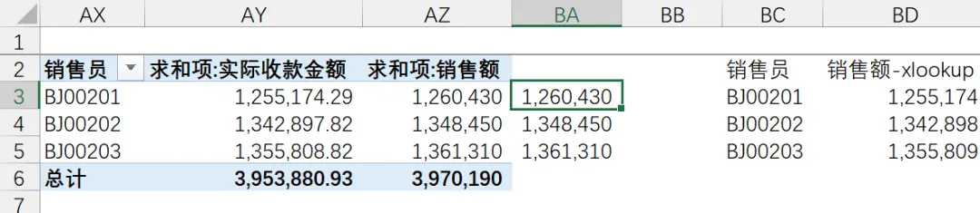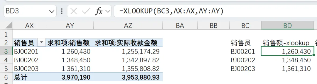 得到如上的数据,金额1,260,430元,与上述xlookup一致