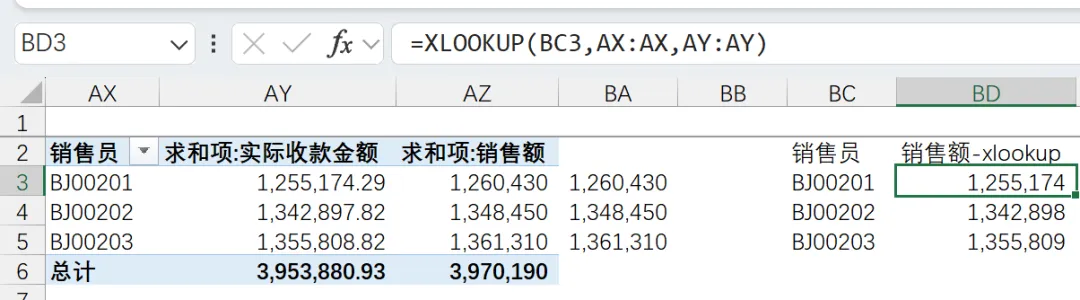 【方式1】用xlookup:查找区域来自数据透视表