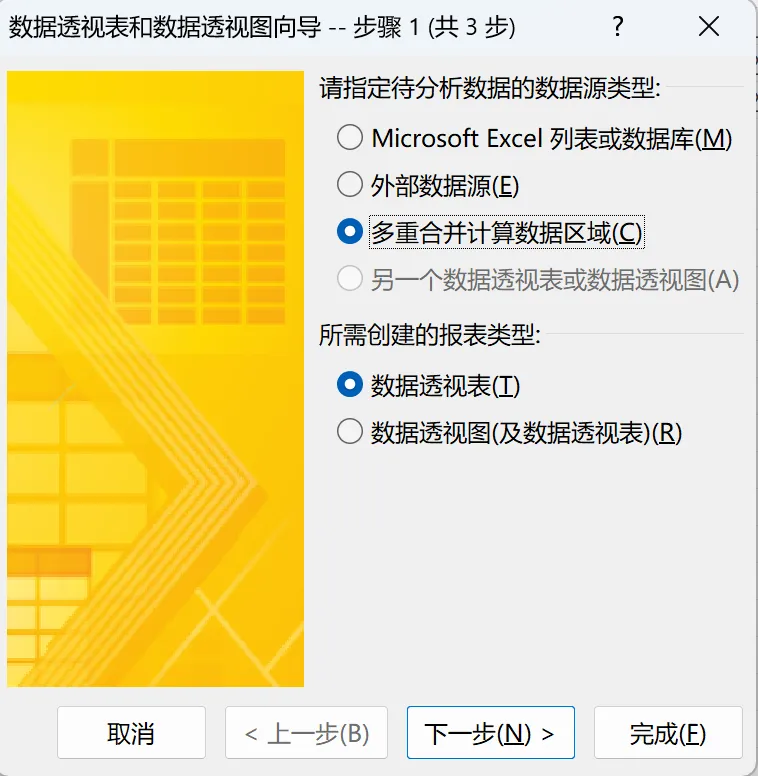 Step1:先按Alt键,再依次按D和P键,调出数据透视表向导