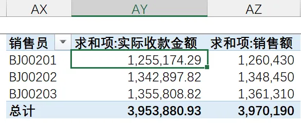 【具体操作】双击该员工实际收款金额对应的单元格,即:1,255,174.29