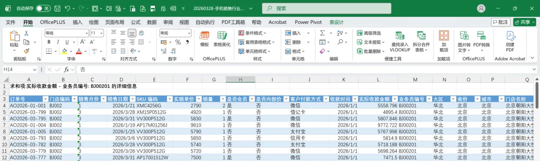 销售员BJ00201的收款金额明显低于另外2位员工,希望能看下具体的明细