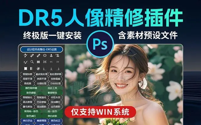 DR5 终极版PS插件来了!AI美颜黑科技,一键修图效率翻倍【1944期】