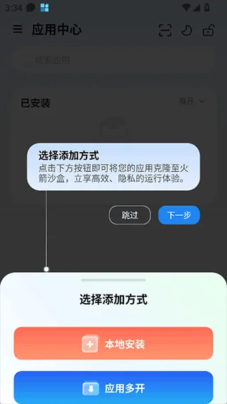 1、添加应用时支持本地安装和应用多开两种方式