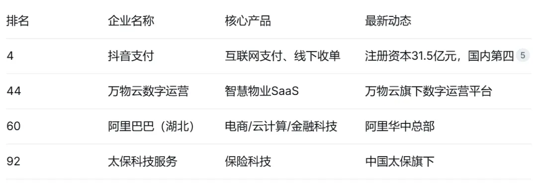 这4家企业,加上工商银行湖北省分行,共同构成了武汉金融科技与支付产业的“第一梯队”。它们正在用数字技术重构支付、物业、电商、保险——让数亿用户的交易更安全,让老旧社区的物业更智能,让保险服务触手可及。