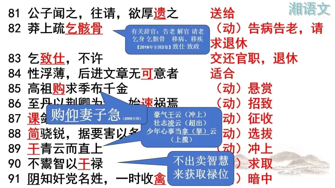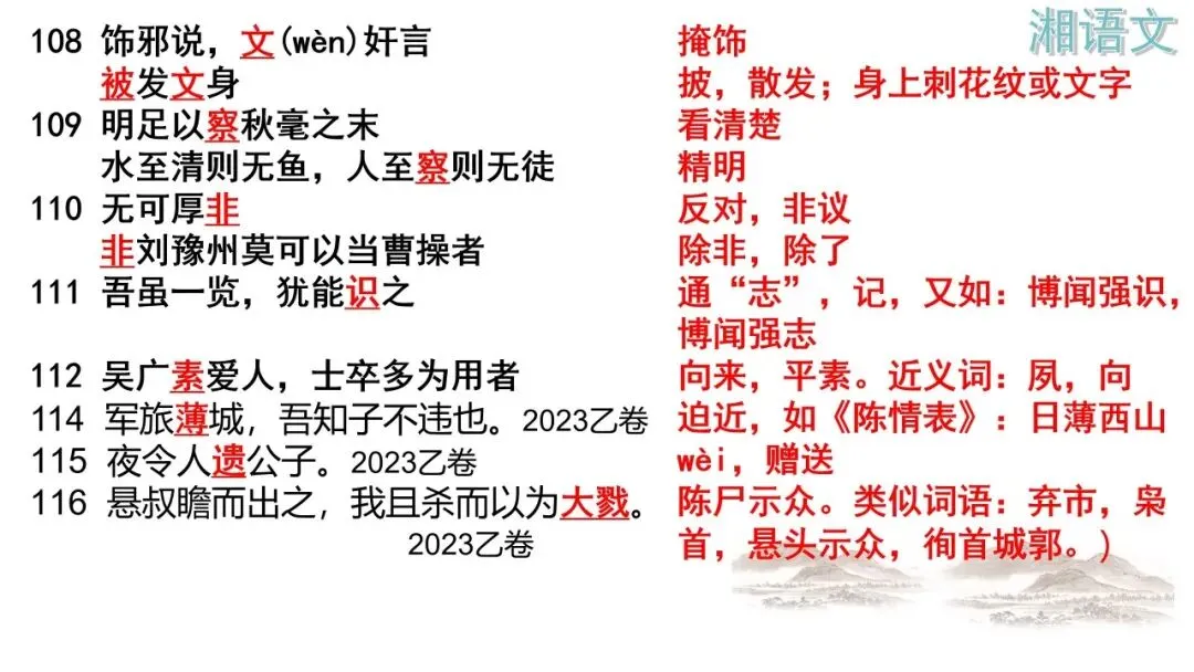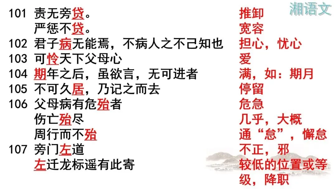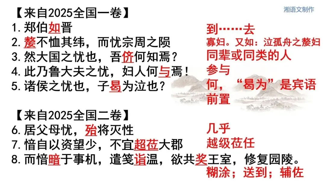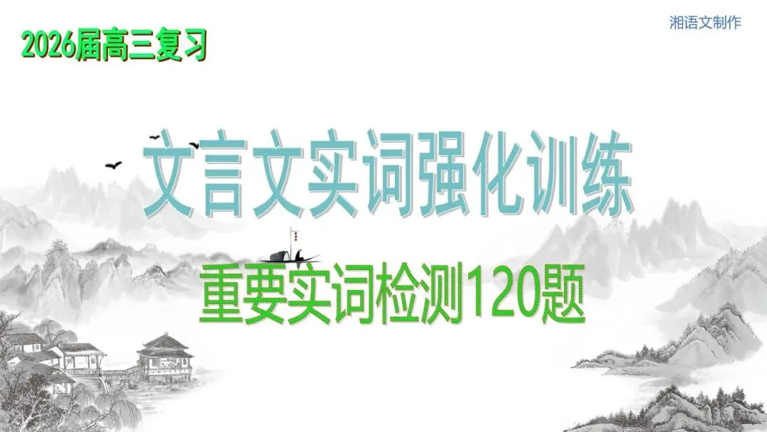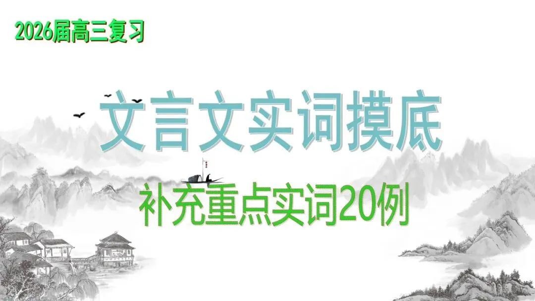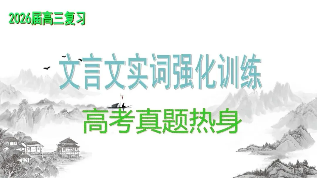 本次推送“2026届文言文重点实词100题过关检测”(28张灯片,2个课时)。更新时间2025年10月29日。增加了2025年高考全国一卷、全国二卷文言文试题涉及的重点实词,补充了一些较难句子的翻译与注释。包含三个文件:课件、学生版文档、教师版文档。
