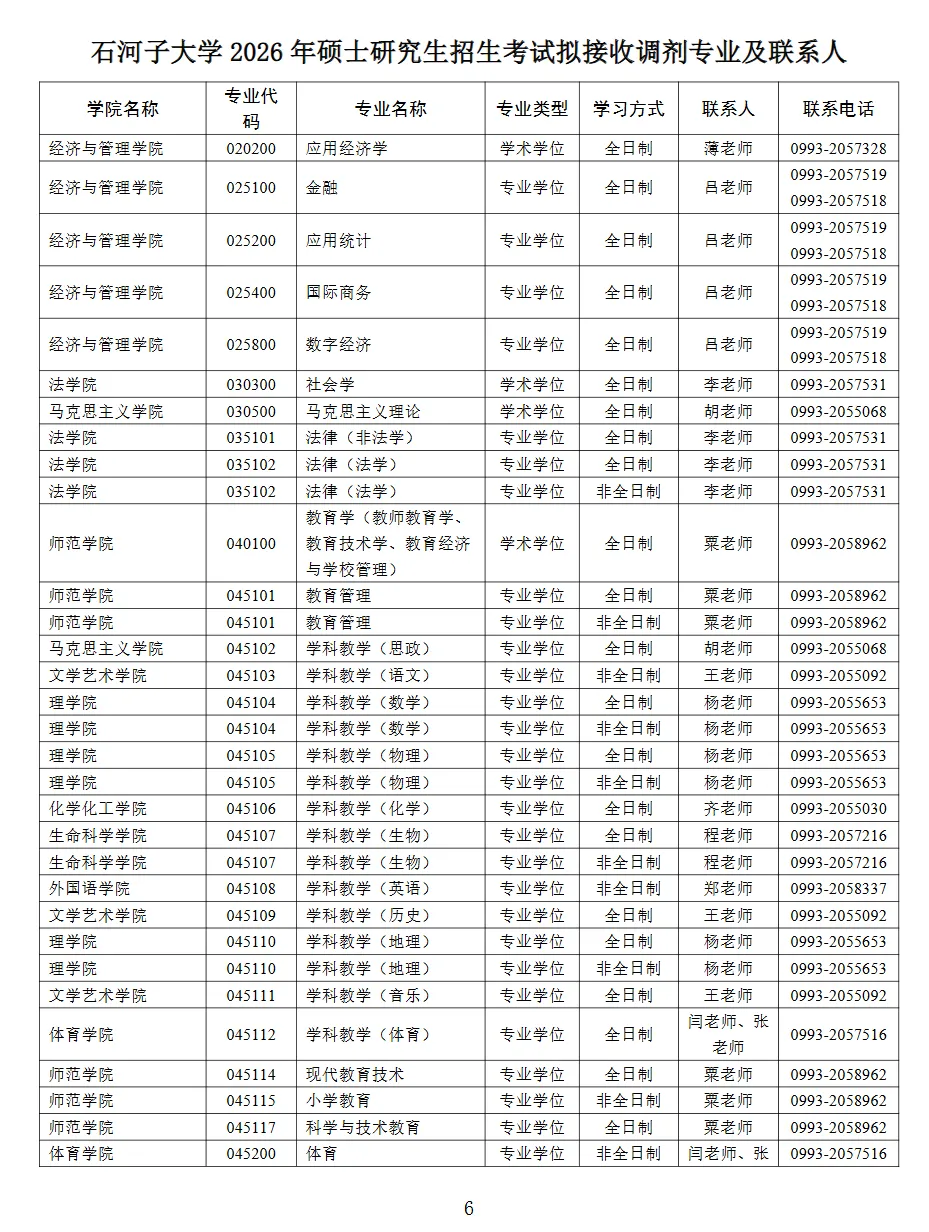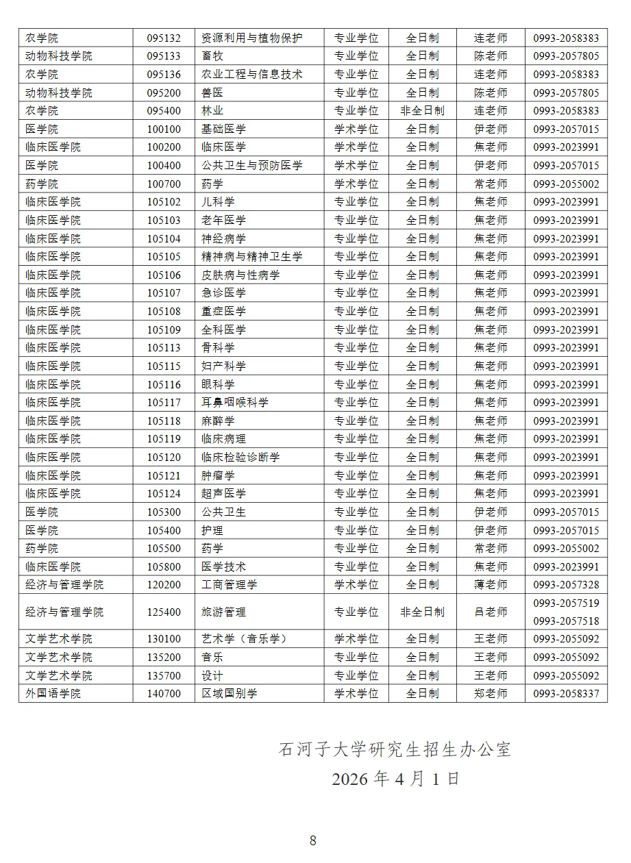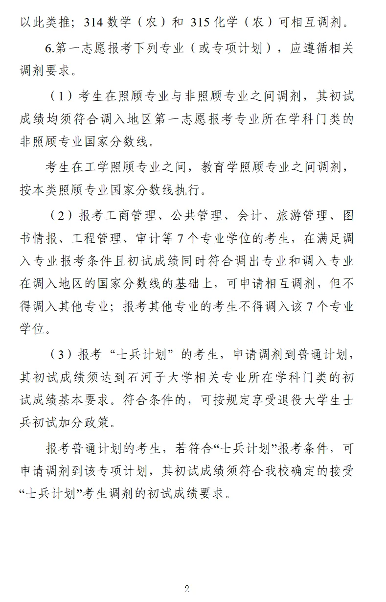 考研调剂丨石河子大学2026年硕士调剂说明