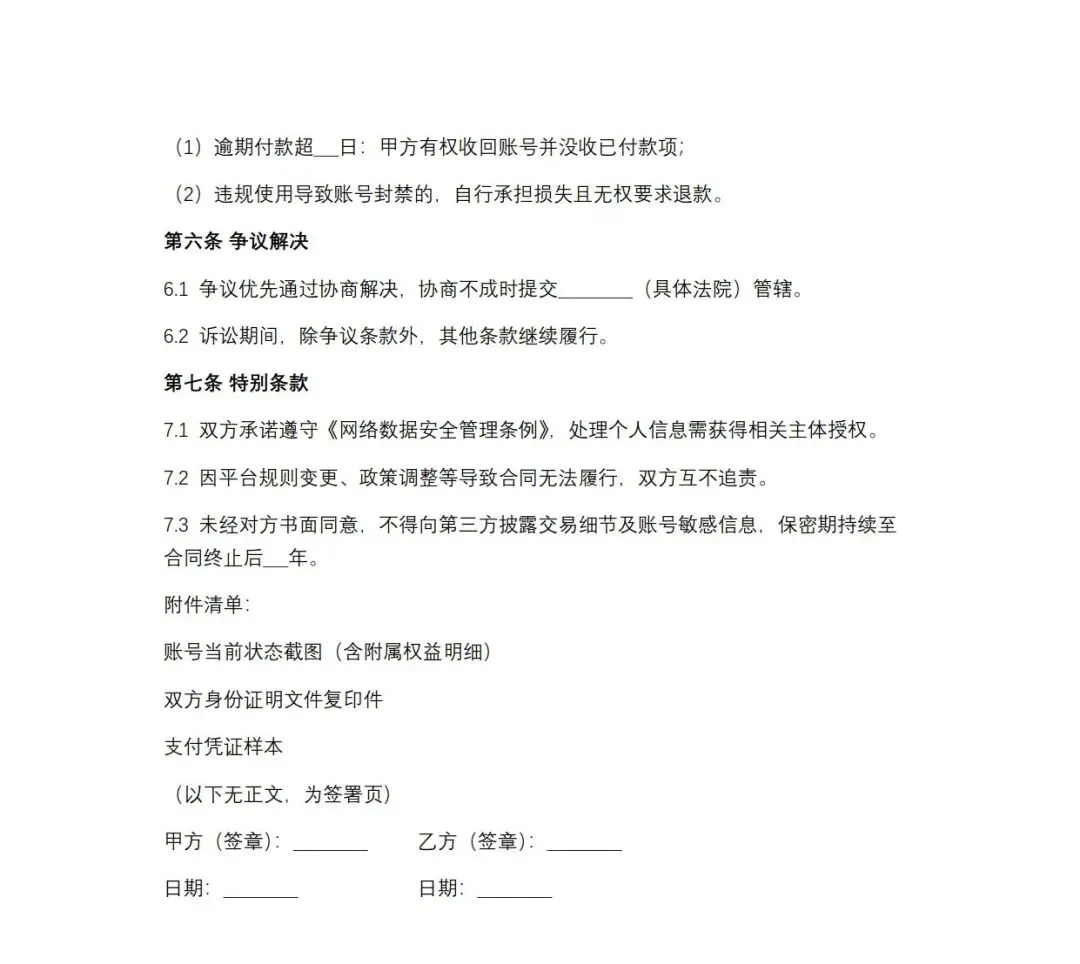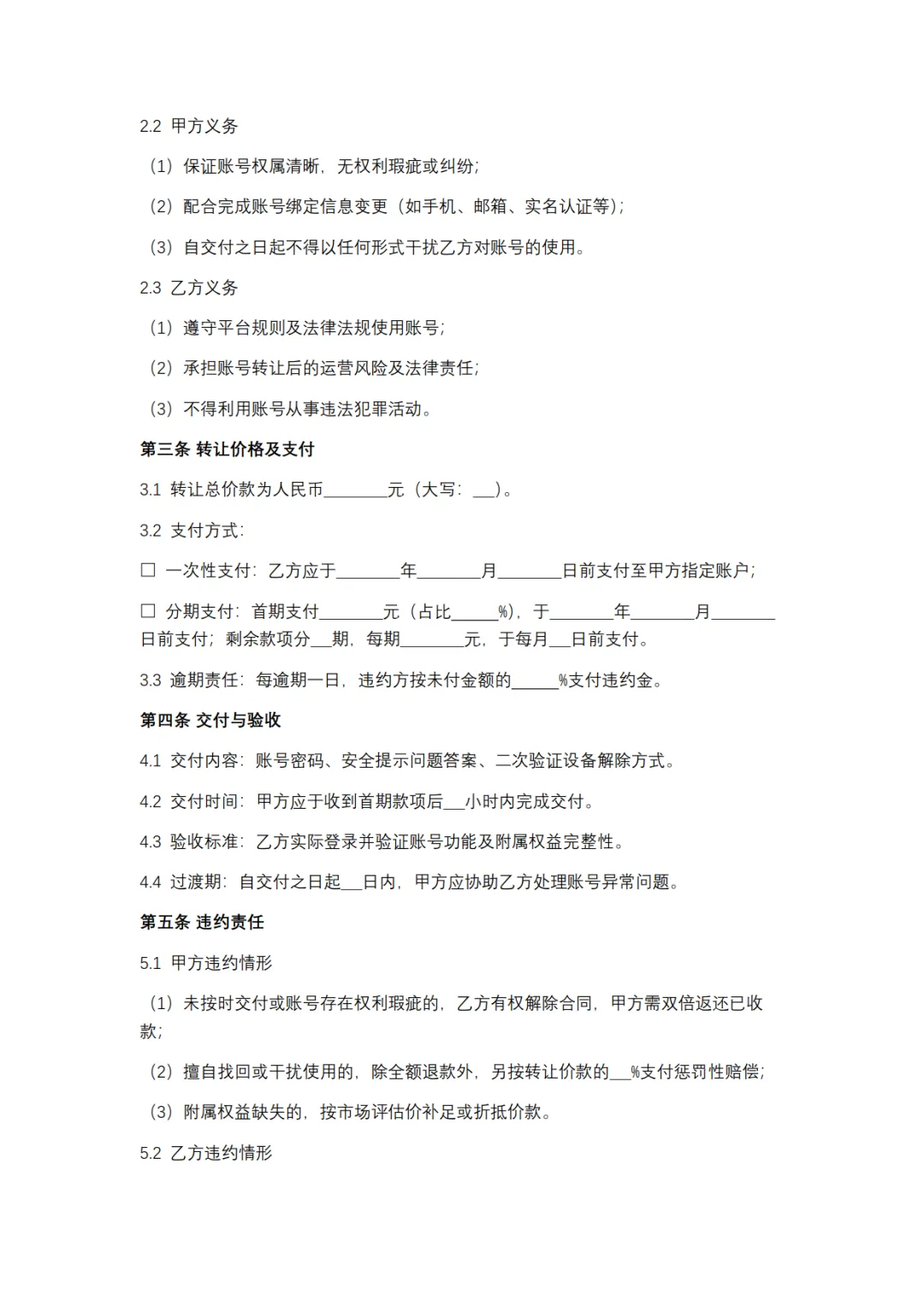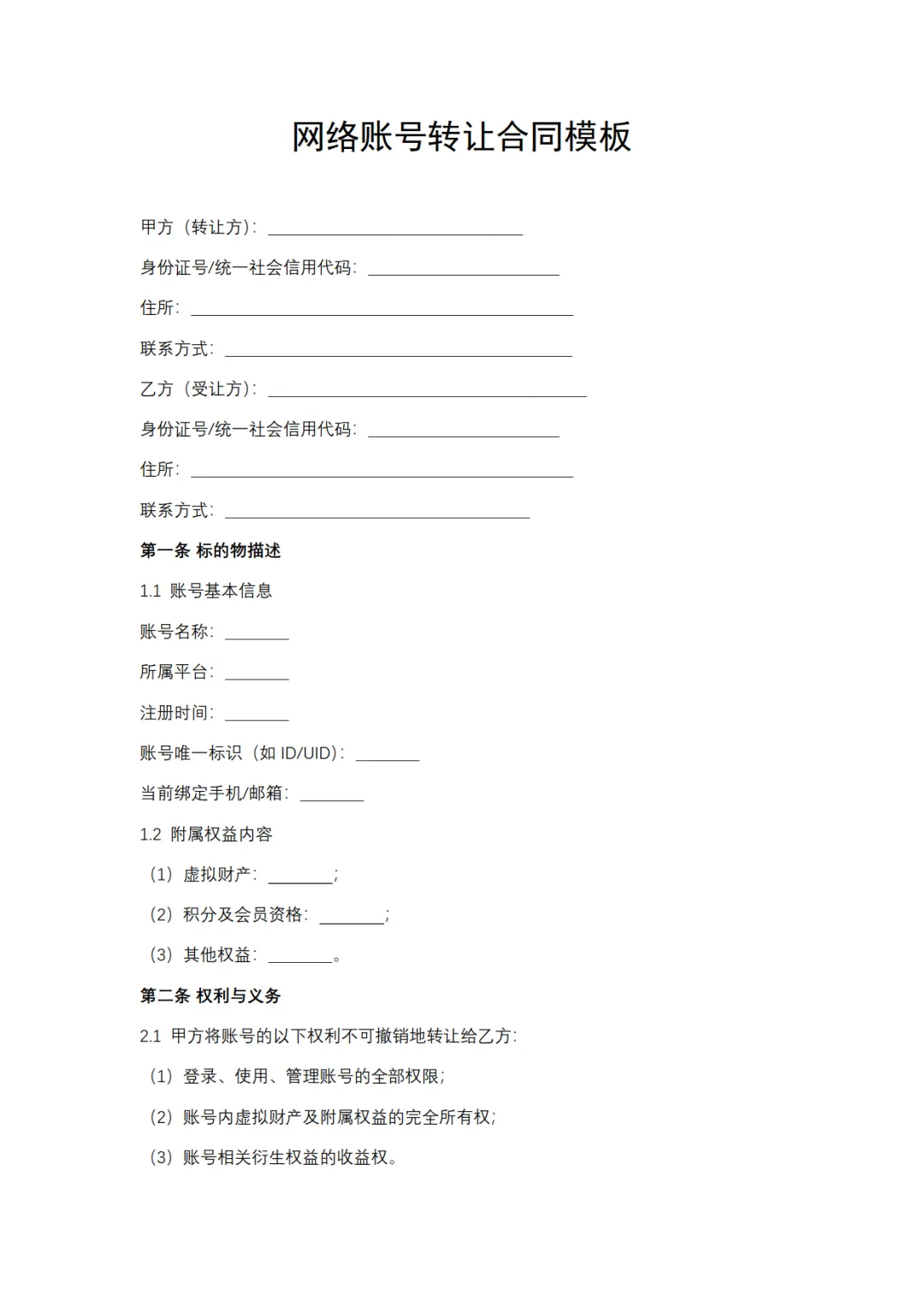 网络账号转让合同模板,WORD文档电子版,可免费下载打印