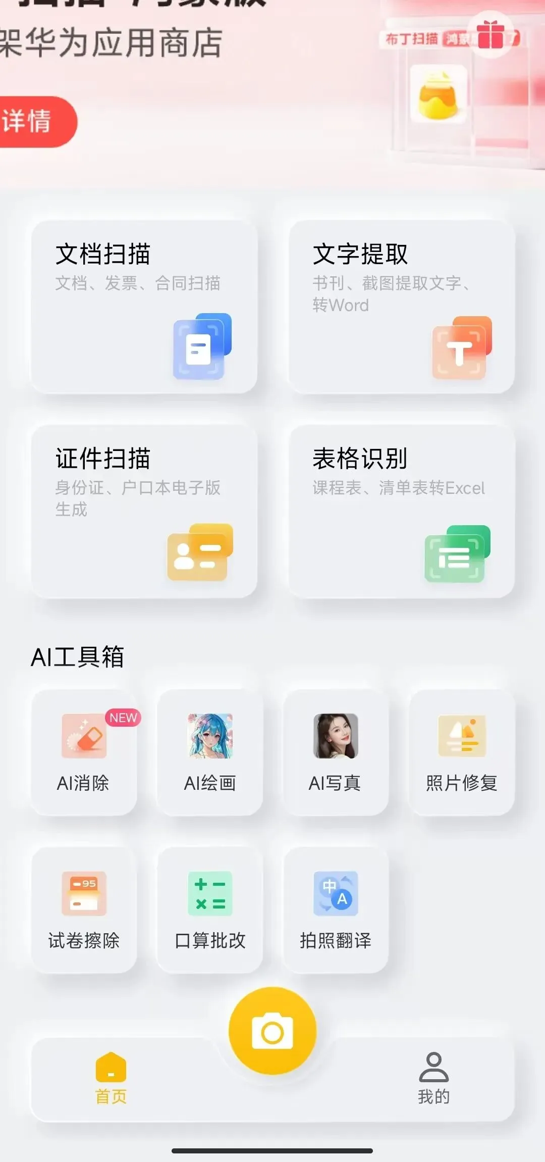 软件支持文档扫描、文字提取、证件扫描、表格识别等等,这些基础的功能没有收费,不过AI应该是收费使用的。