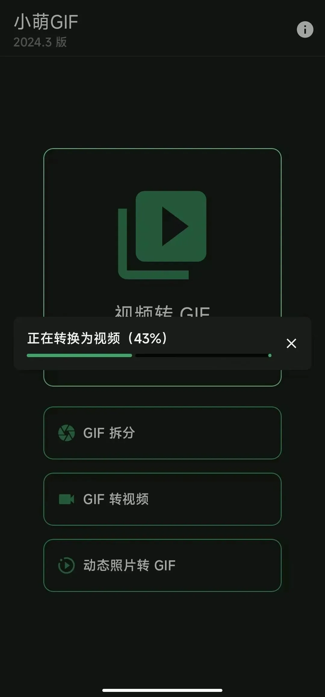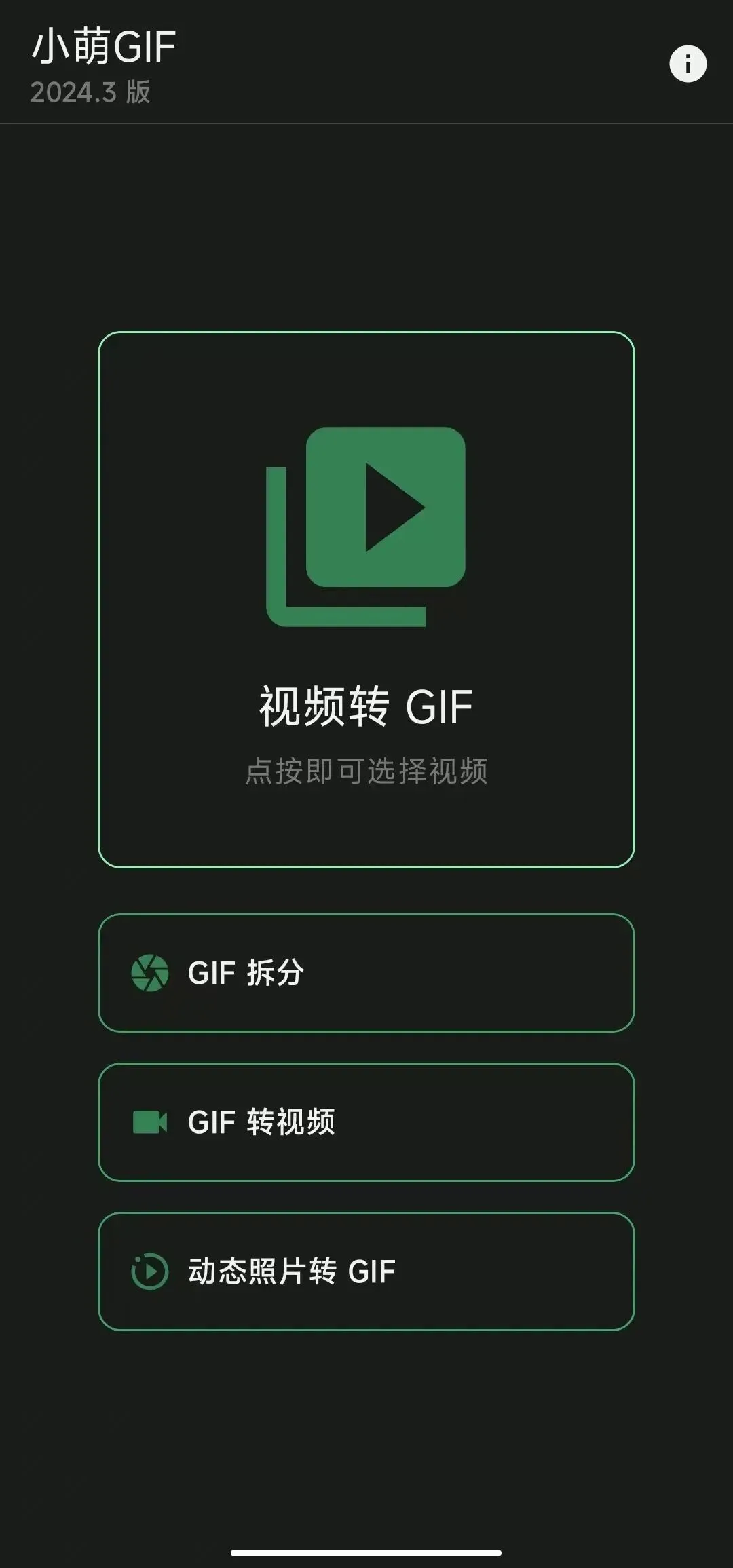 软件有“GIF拆分”、“GIF转视频”和“动态照片转GIF”这几项功能。