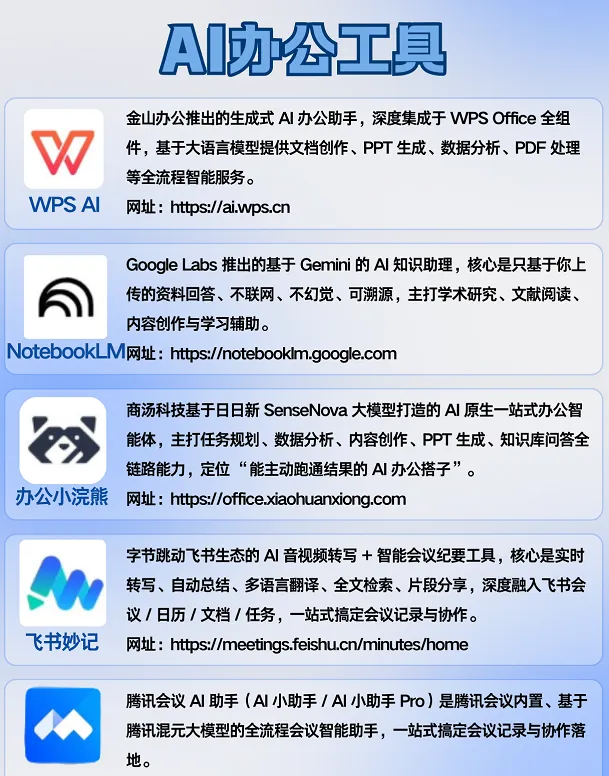 笔记 / 会议:NotebookLM、飞书妙记、腾讯会议 AI 助手