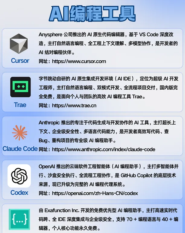 专业开发:Trae、Claude Code、Codex