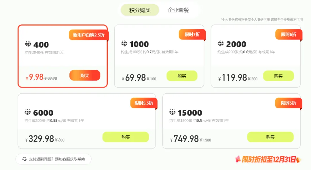 AI 短视频:29.9 元 / 条起(30 条起) - 团队 / 企业版