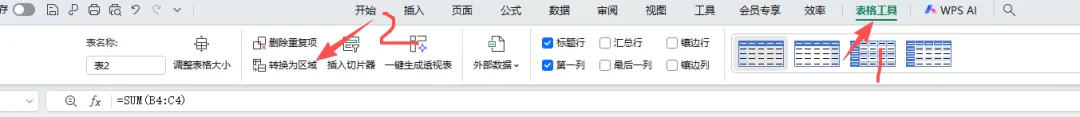 取消超级表格:选中表格后,点下表格工具-在点击转换为区域就可以了