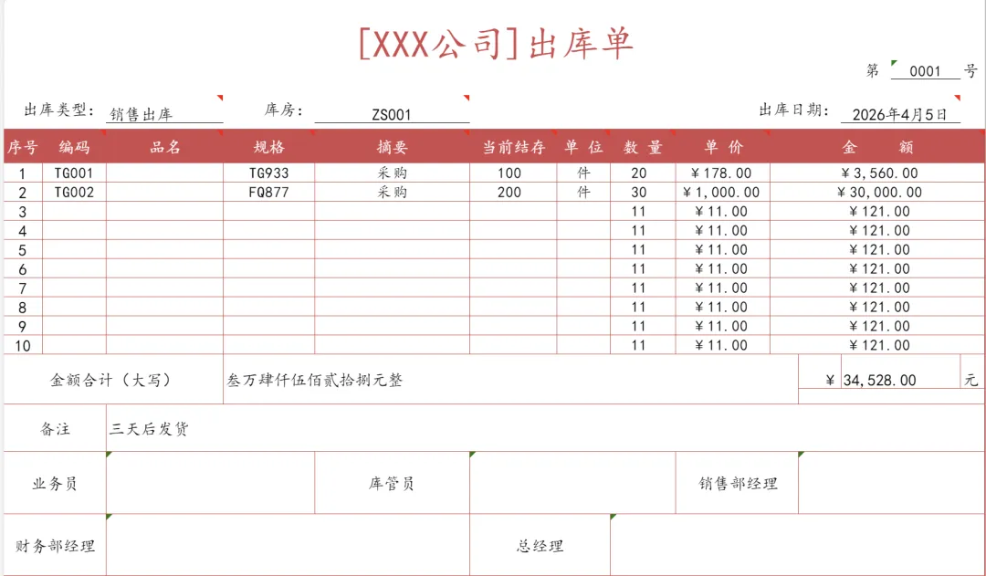 出入库单模板Excel表格模板 仓库管理必备!免费保存下载 可编辑可打印