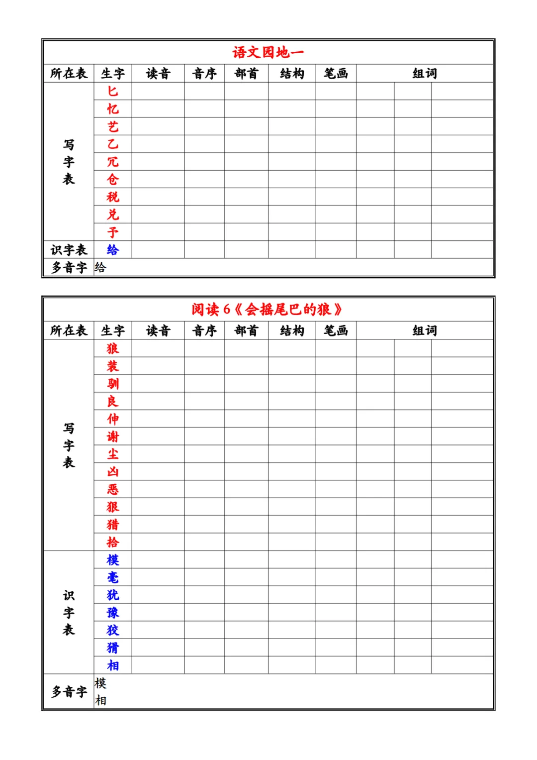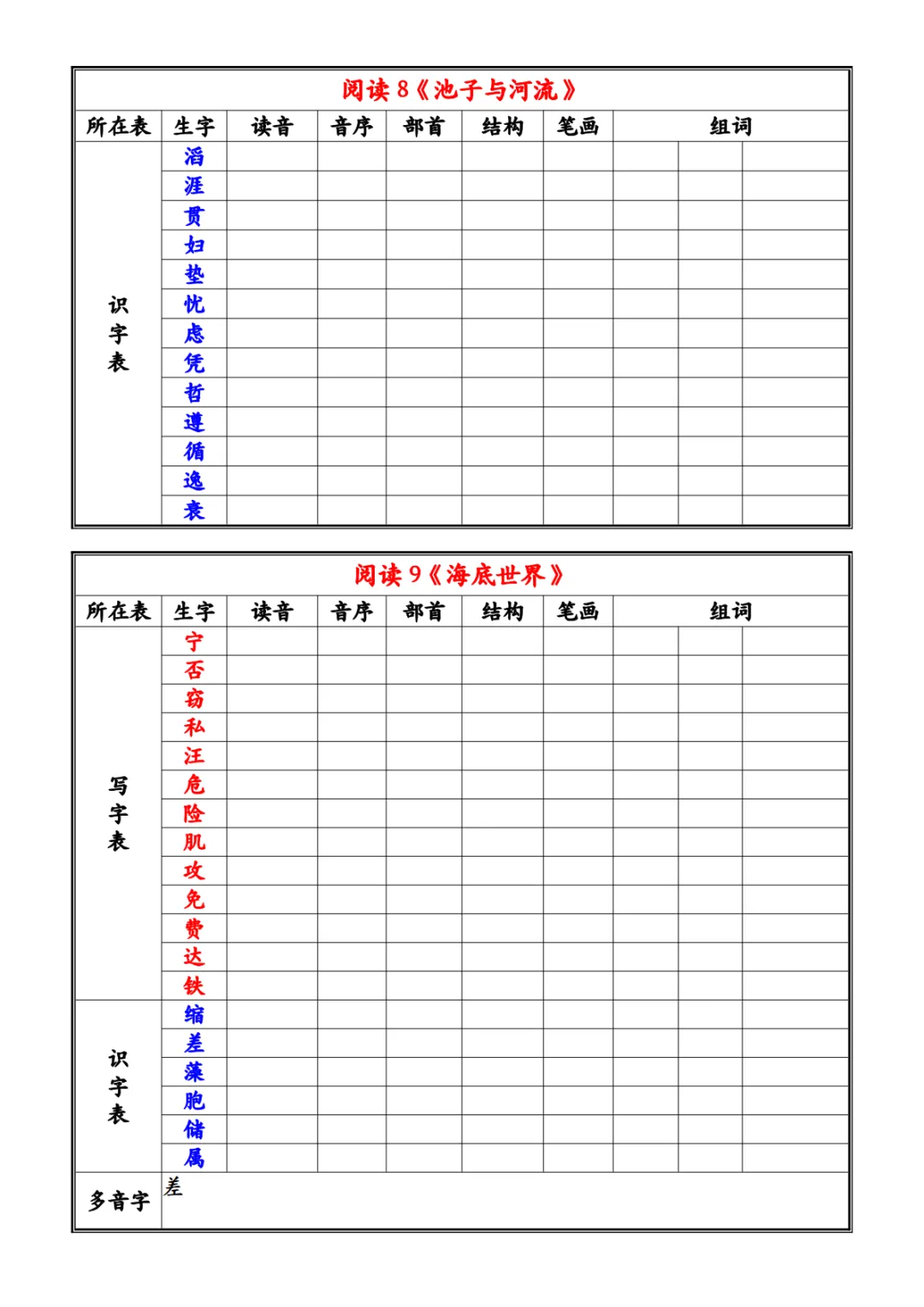 【免费下载】三年级(下)语文 26春《写字表识字表》注音组词小贴PDF高清电子版,可打印,百度网盘打包下载