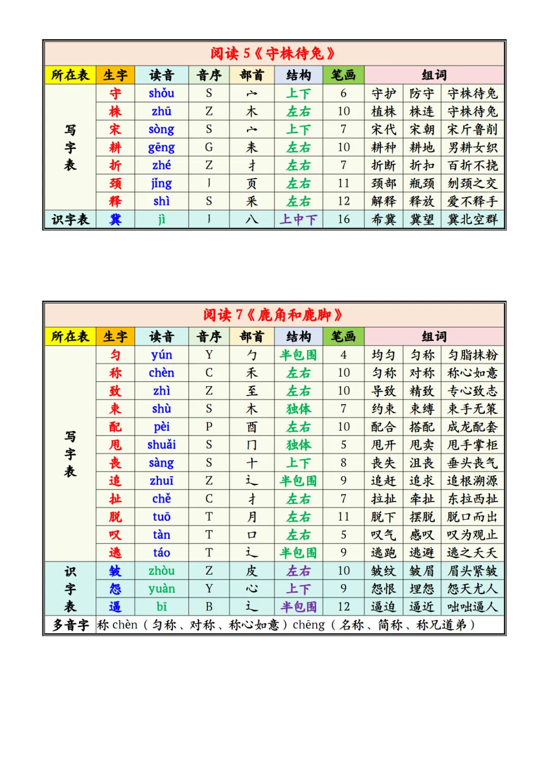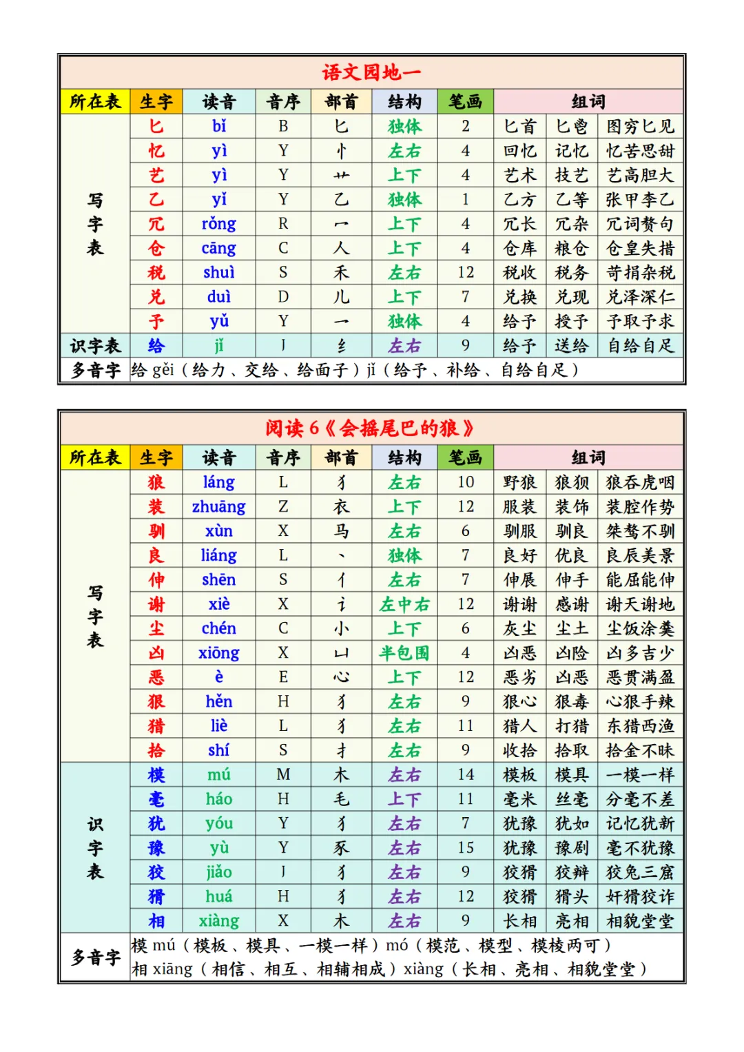 【免费下载】三年级(下)语文 写字表识字表注音组词课课贴PDF高清电子版,可打印,百度网盘打包下载