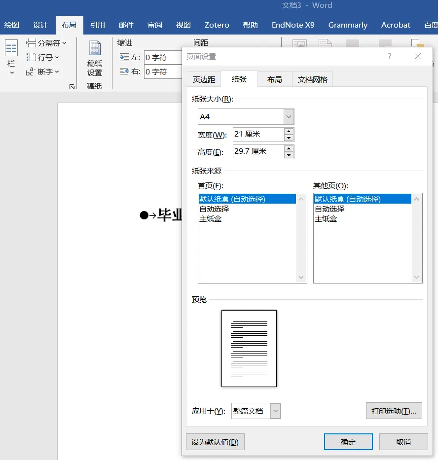 1、学位论文内容一律采用计算机打印,用A4(210×297)双面打印,白色幅面复印纸输出。为便于装订、复制和读者批注,要求纸的四周留足空白边缘,页边距:上、下3.8cm,左、右3.2cm,页眉、页脚3.0cm,装订线0 cm。除前置部分外,其它部分双面印刷。