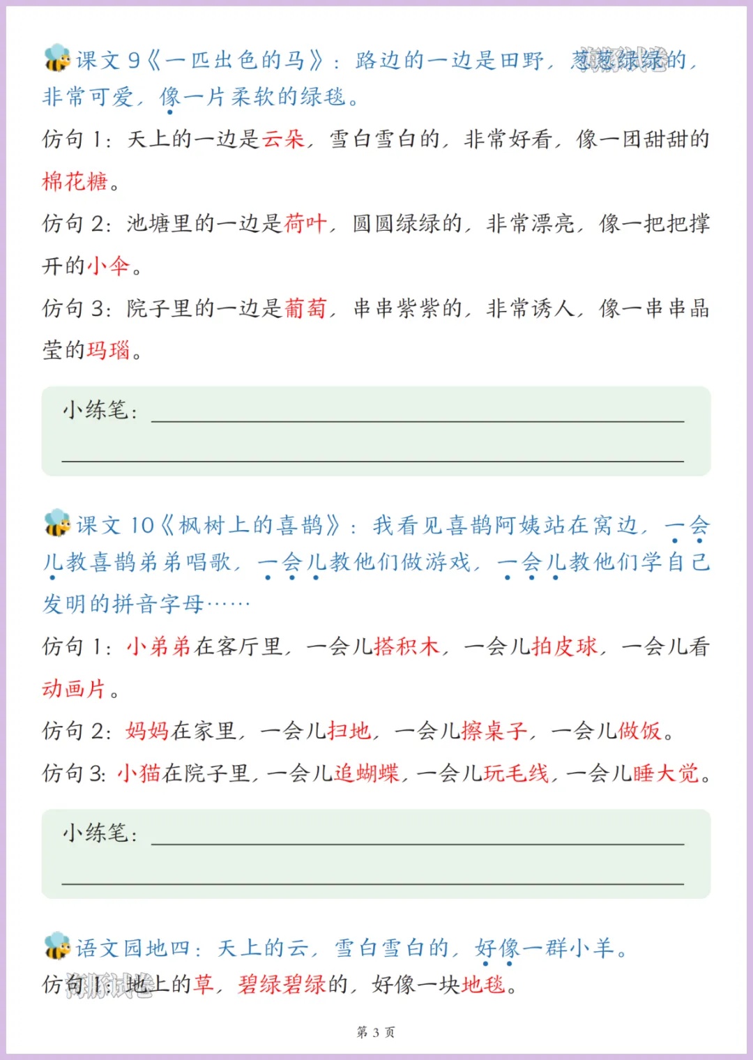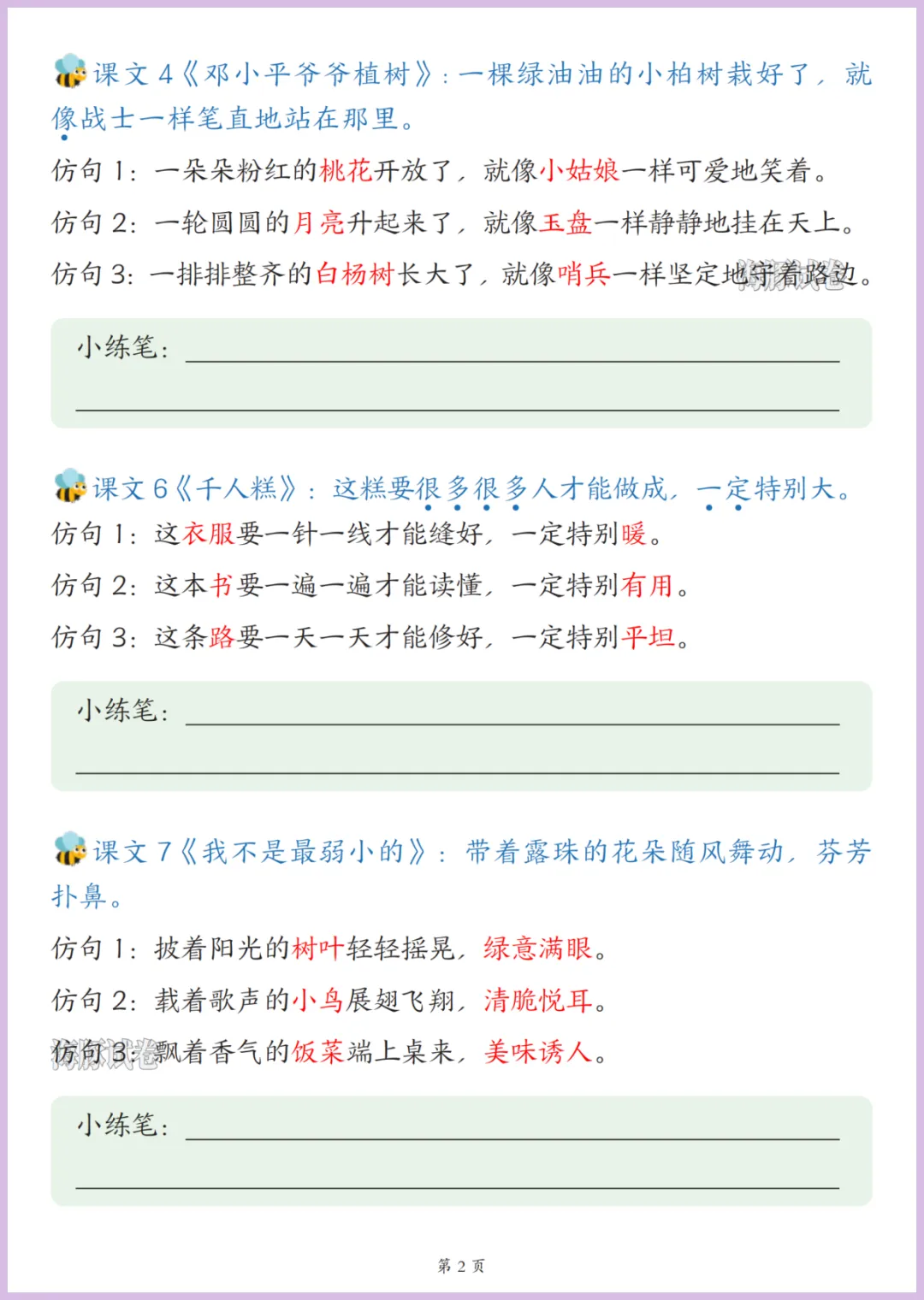 二年级(下)语文重点句子仿写汇总,可打印