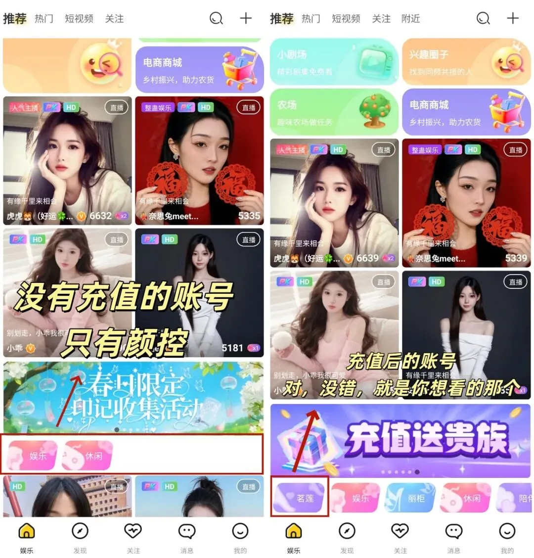 破解版App重磅来袭 众所周知,正版来乐直播平台要求,新注册用户需大约充值2000~3000金币(≈200~300RMB)才会开通茗莲频道(就是粉丝一直问我为什么我的软件没有想看的主播或者怎么总是没有开播)。主要就是因为官方屏蔽了新用户(白嫖党/僵尸粉)。 对新用户来说,并不友好,于是我们为苹果,安卓用户分别定制了开通版本,无需充值,注册账号或登录已有账号可以看到茗莲频道的app 👇更多精彩关注下方客服朋友圈置顶贴👇