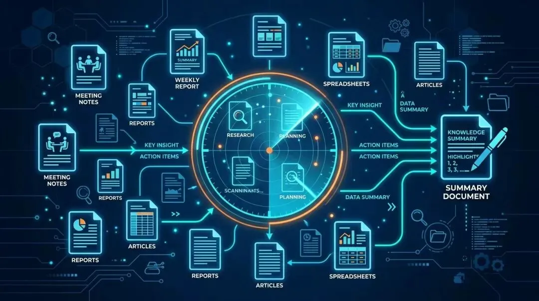 关键变化:从”先找到文档,再喂给AI”变成”告诉AI去哪个文件夹找,它自己读、自己总结”。信息没有重复搬运,知识没有断联。
