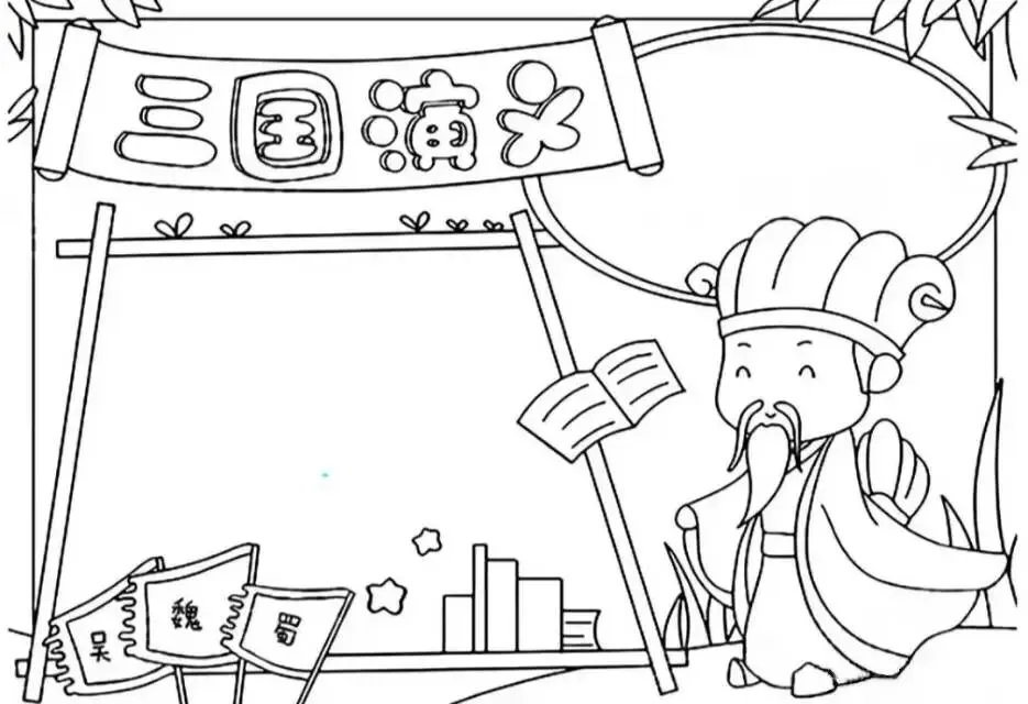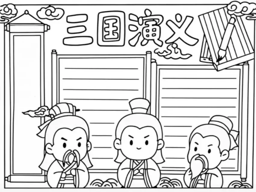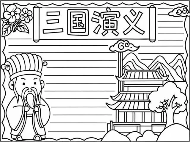 三国演义手抄报|线稿可打印