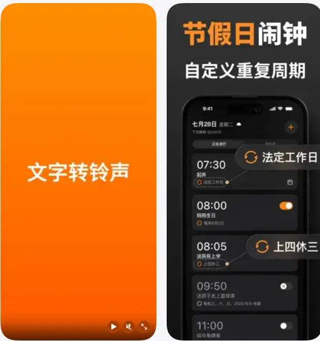 写在开头:先问你一个问题,你是不是也这样——定了周一早上7点半的闹钟,结果周一其实是调休上班的日子,闹钟没响,迟到了。或者反过来,周六明明是休息,闹钟却响了,把你从美梦里拽出来。还有更头疼的:单休、大小周、上两天休一天、这周上四天下周上五天……市面上的闹钟APP,基本都听不懂这些。-目前终身会员限时免费!