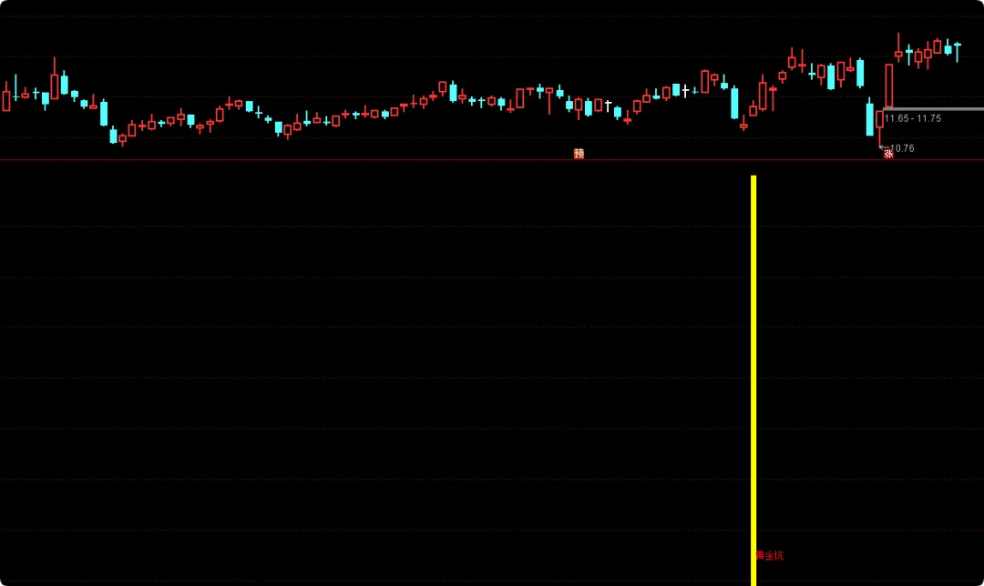 DRAWTEXT(挖坑,0.5,’ 黄金坑’),COLOR0000FF;