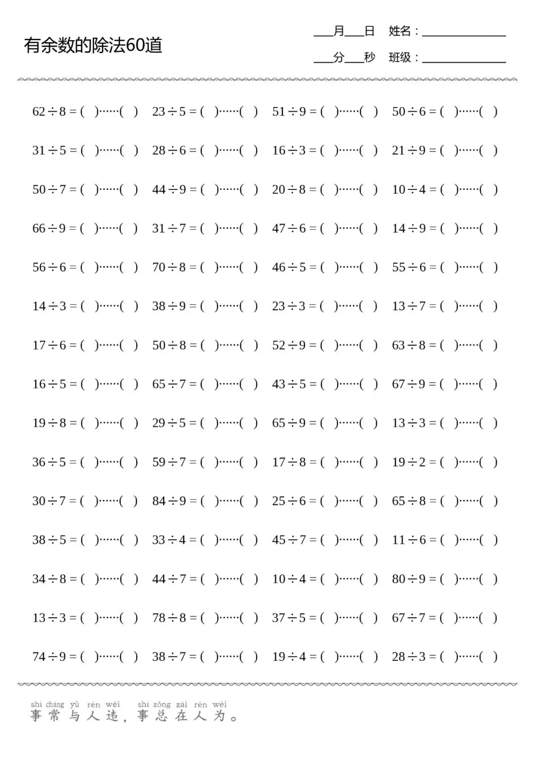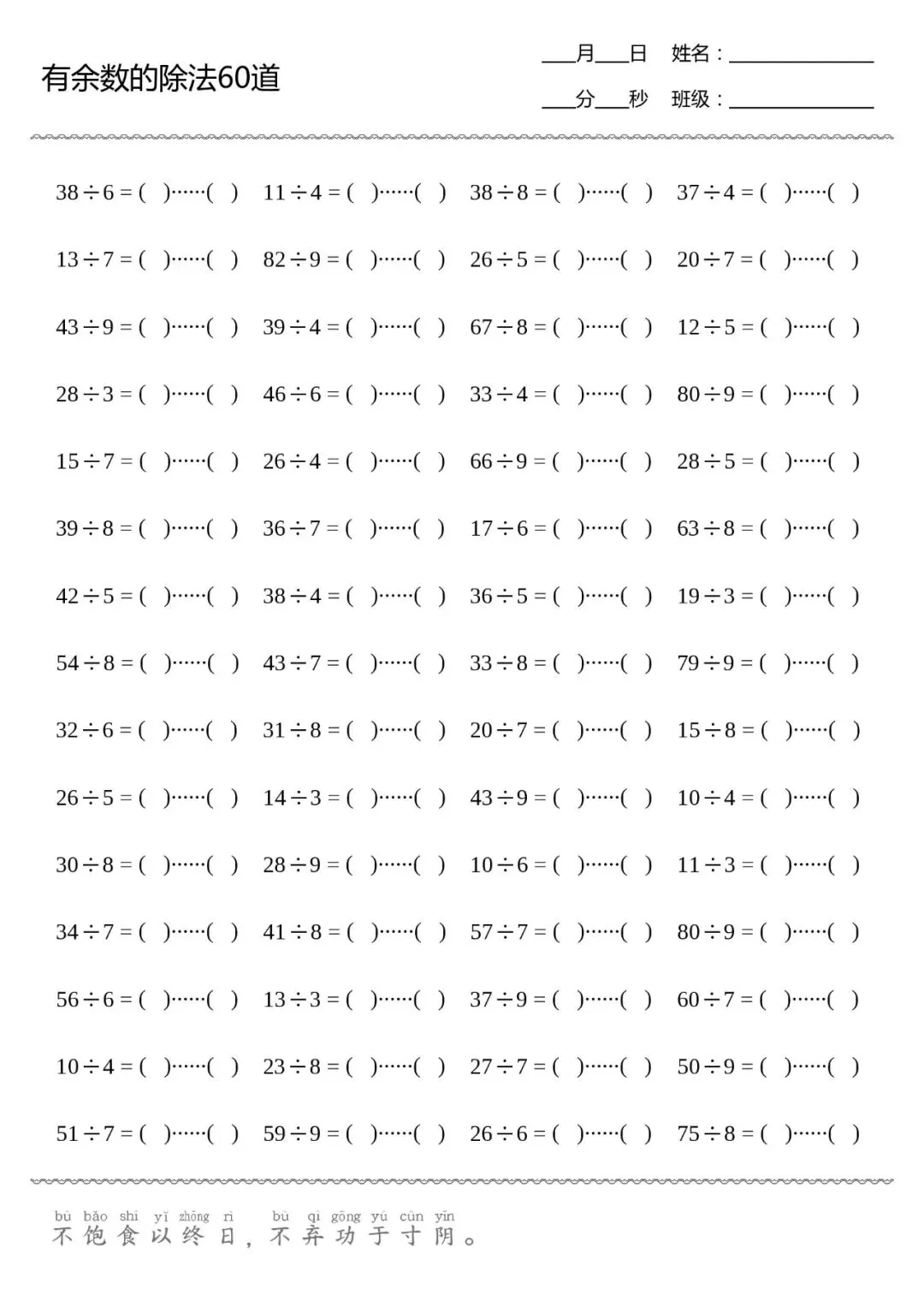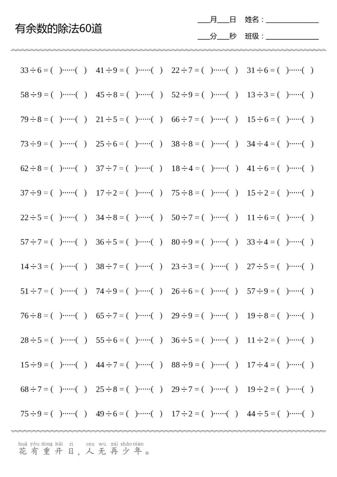 口算打卡 | 有余数的除法(共8张,可直接打印)