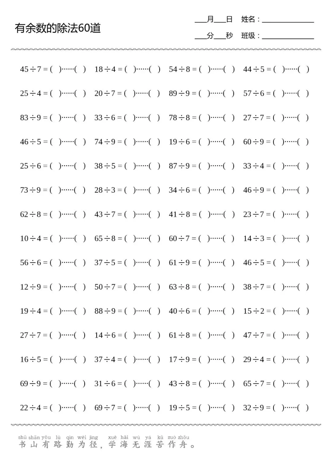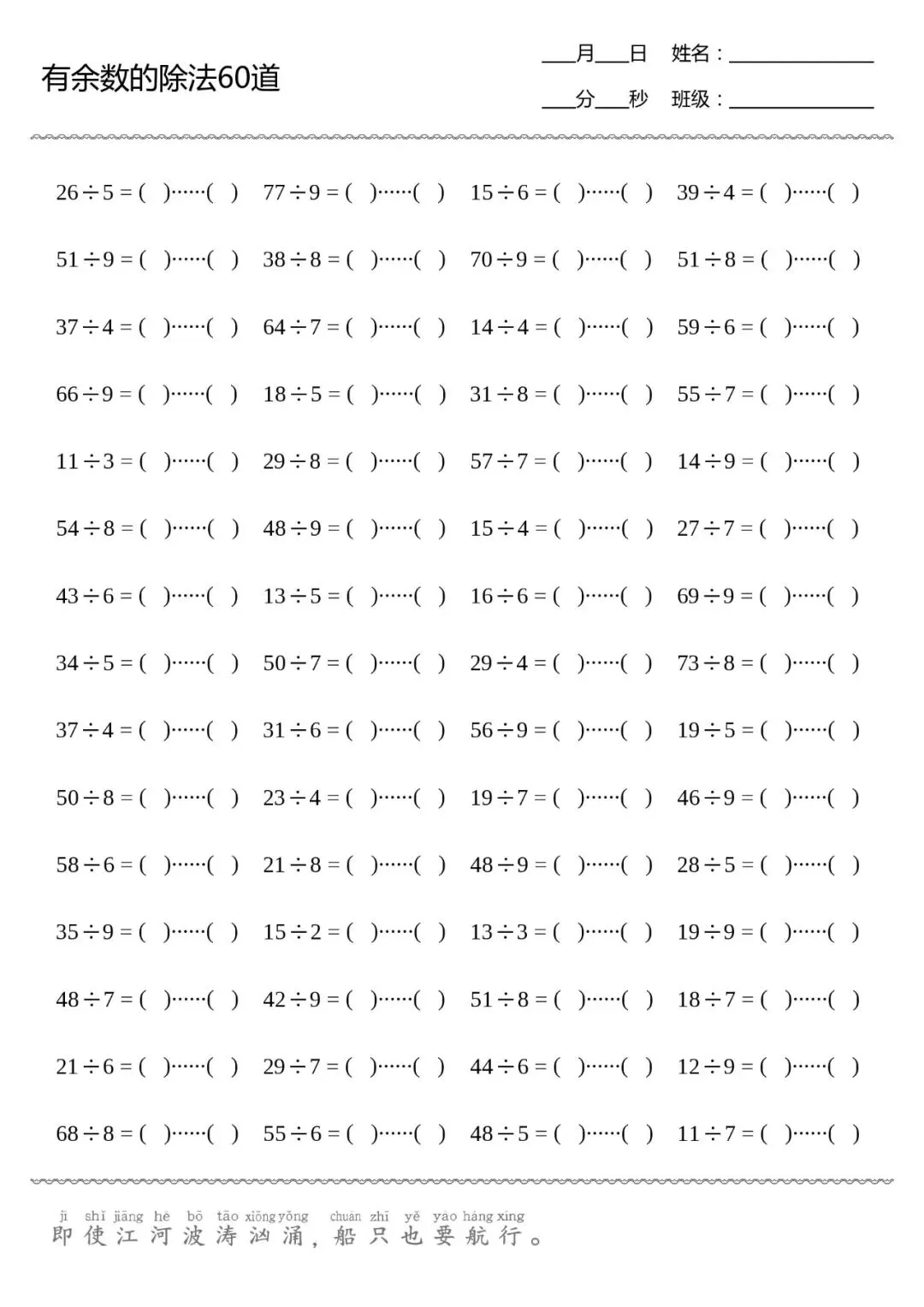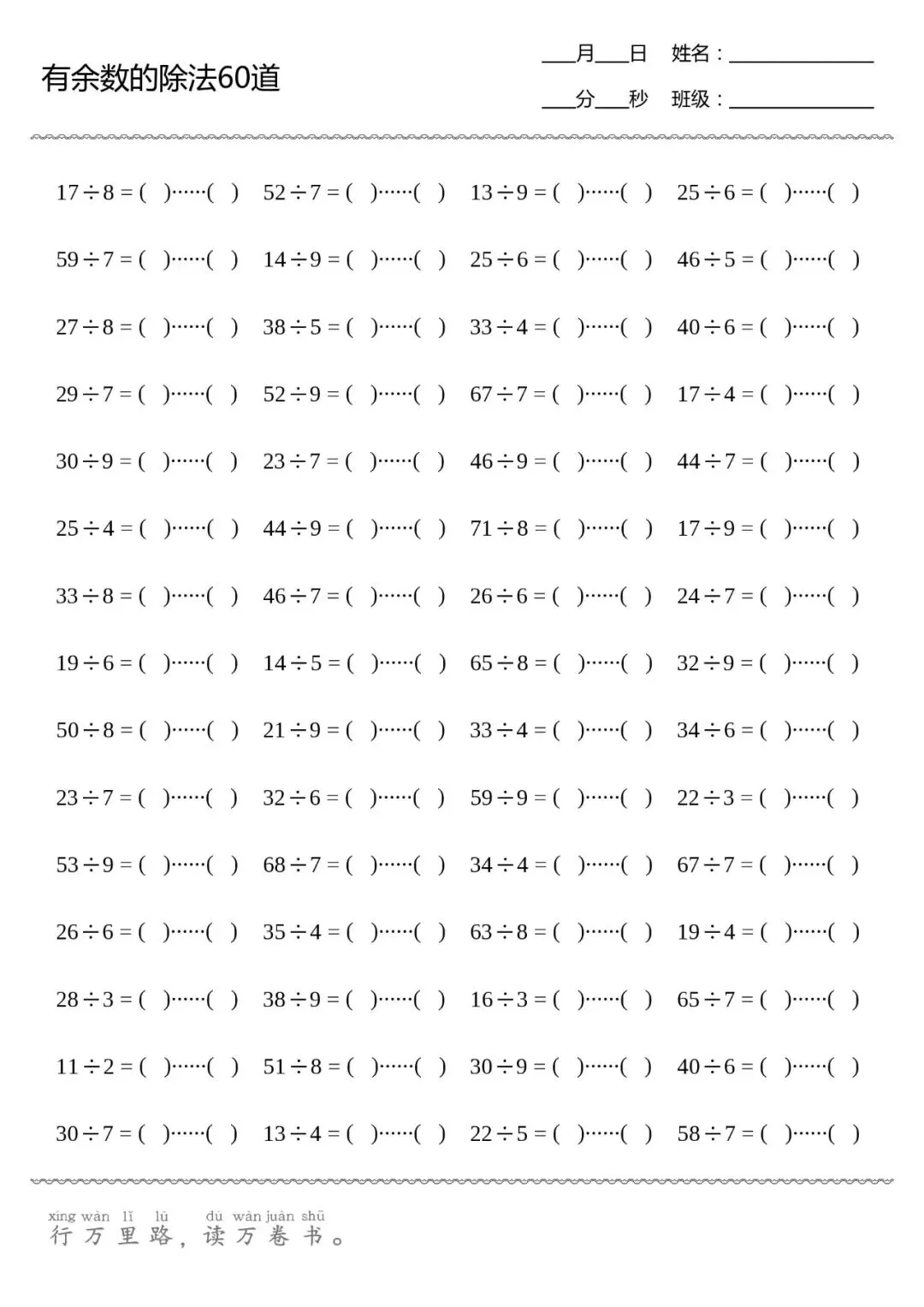 口算打卡 | 有余数的除法(共8张,可直接打印)