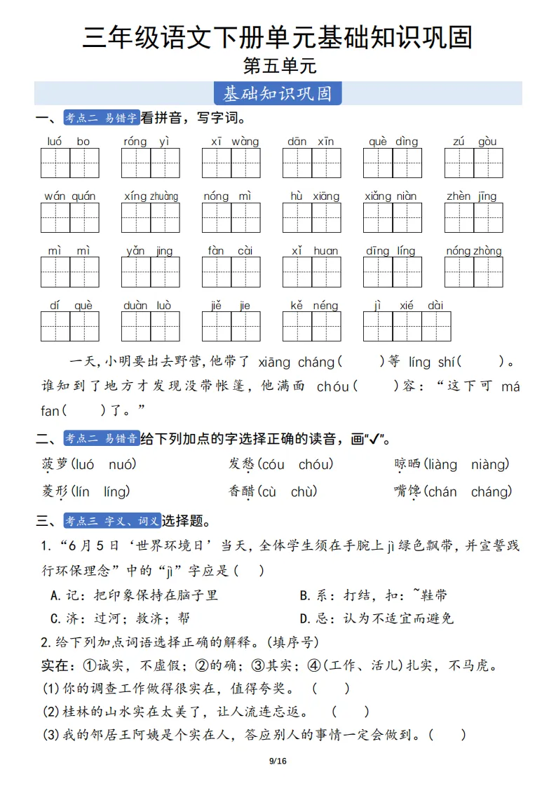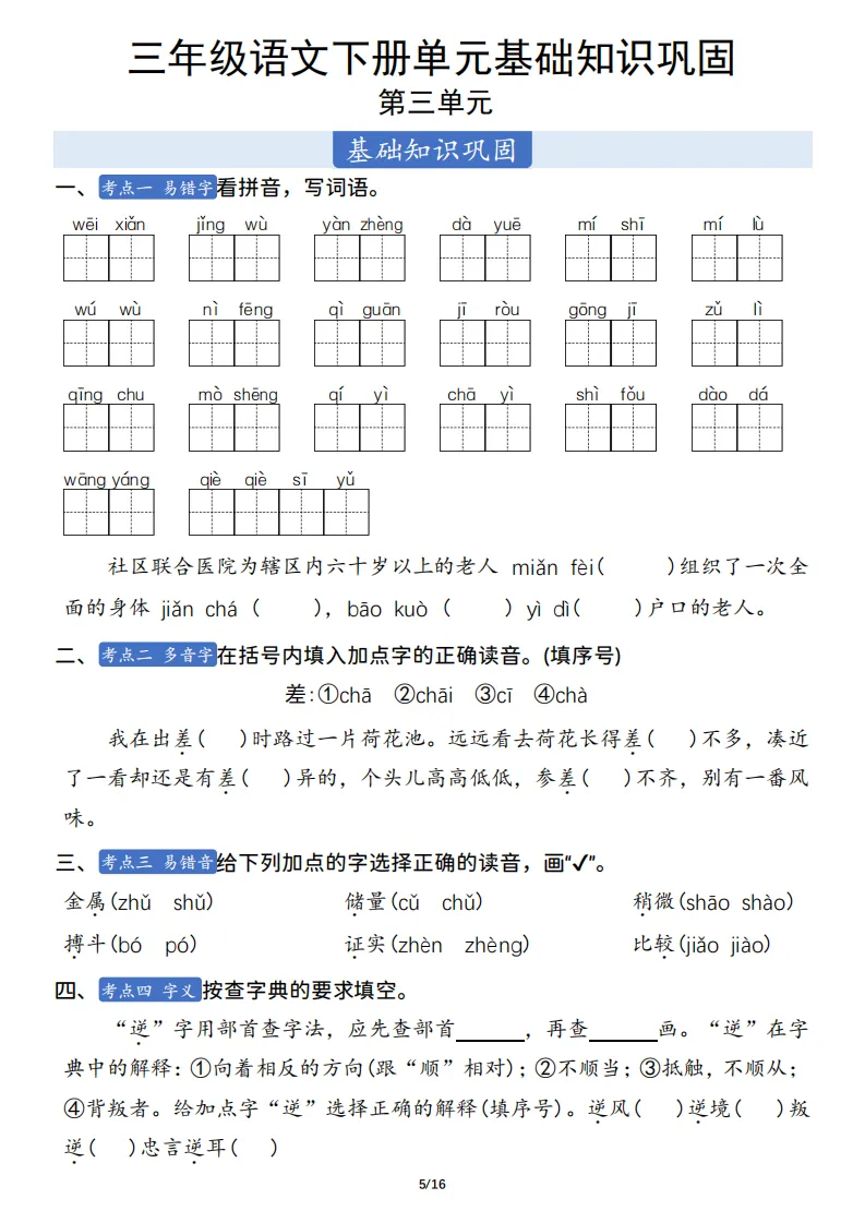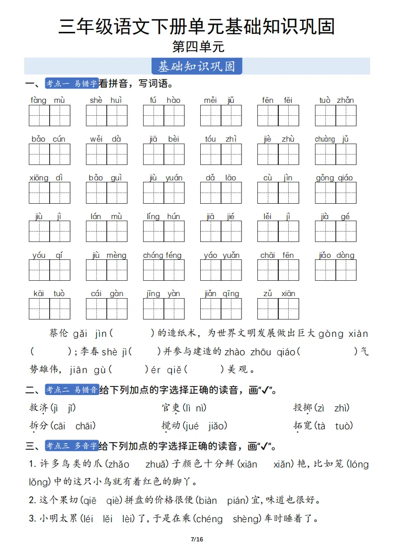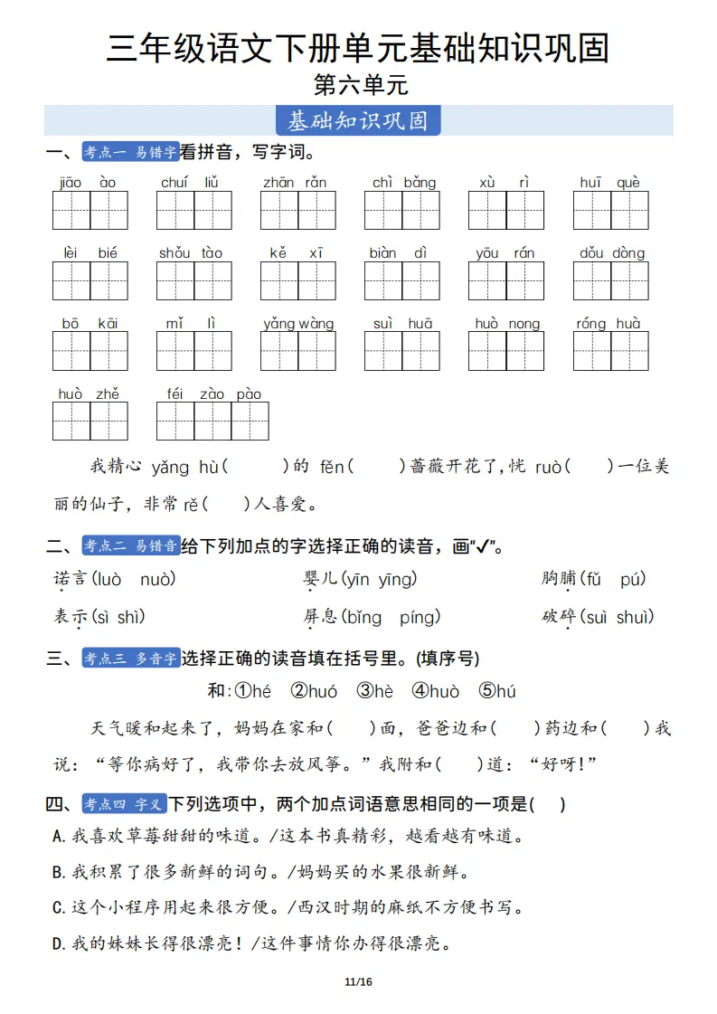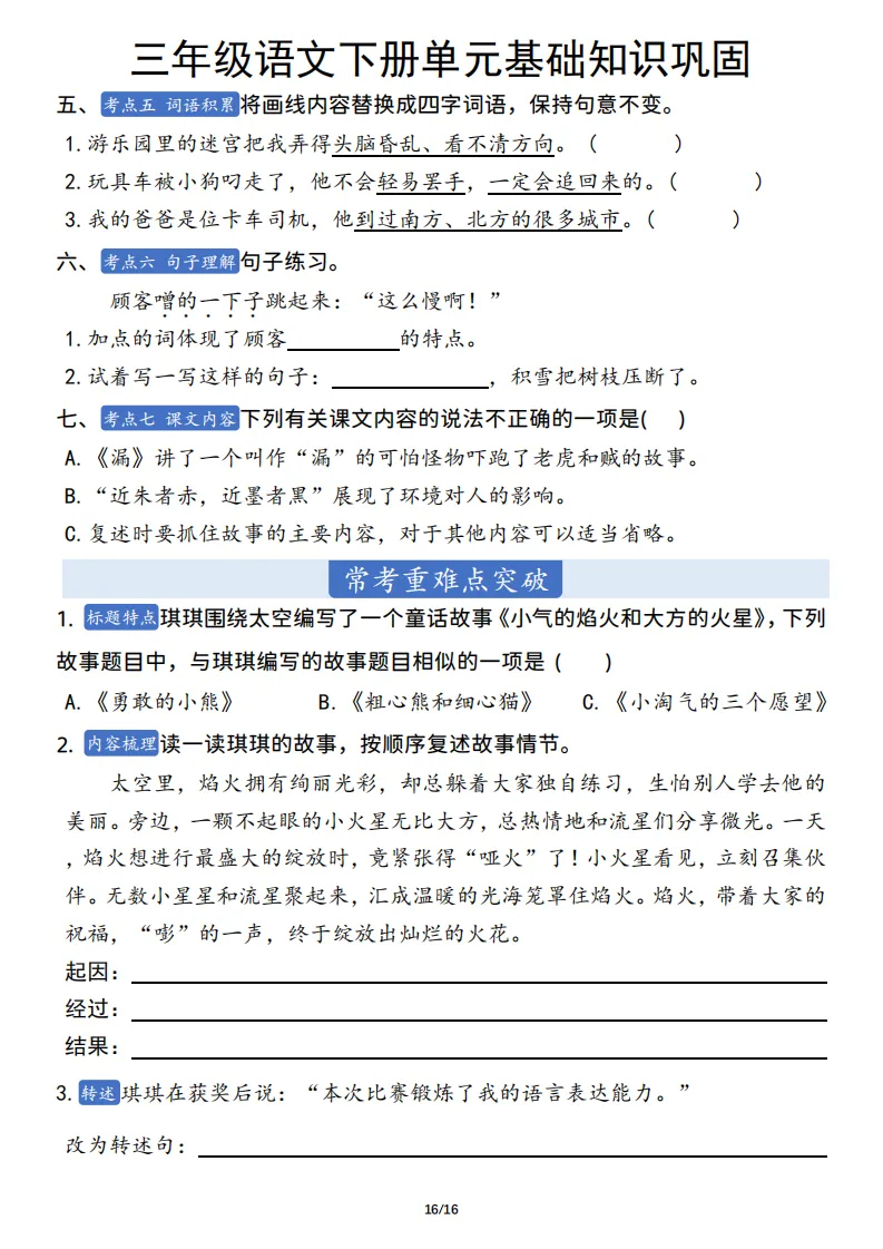 三年级语文下册单元基础知识巩固 ,电子版可打印 点击上方关注领取更多学习资源 三年级语文下册单元基础知识巩固 ,电子版可下载,同步教材每课内容。需要的家长抓紧打印出来,让孩子用起来。 (温馨提示:文末有完整电子版领取方式) 免费领取电版 关注公众号:“博学小课堂” 文章文末:点赞+再看 发送关键字:260404 说明 教辅在精不在多 ,如果觉得资料好,孩子需要正常使用 ,建议购买正版图书本公众号分享教辅资料,是为了给大家介绍、展示教辅资料的内容和特点,推荐大家购买正版教辅。 为了更好地展示资料的情况,我们可能会用到一些资料的截图、官方的样书,或者网络上公开的电子资料,如果权利人认为这些展示可能会侵害到您的权利,请直接告知我们,我们会立刻删除。