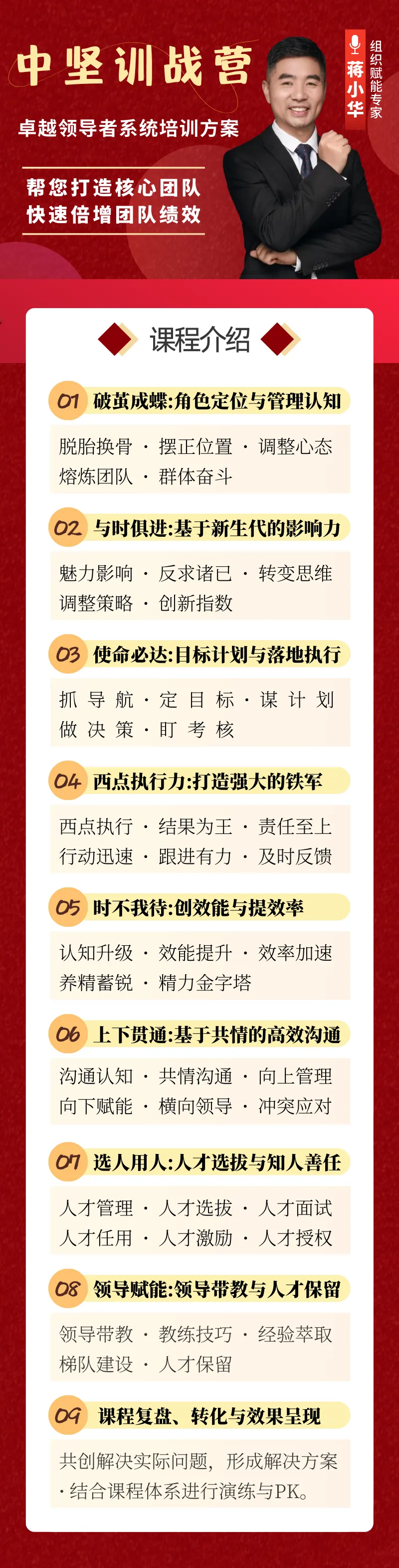 蒋小华老师的《中坚训战营》企业内训课,专门有一章讲怎么识别、用好、更要“制衡”这类人。不是教你打压能人,而是教你建立一套规则体系——让“隐形大佬”为你所用,而不是被你惯坏。