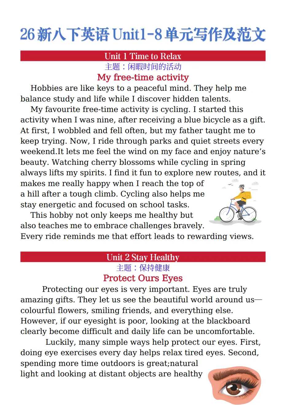 【八年级】人教新版八下英语单元写作范文(可下载)