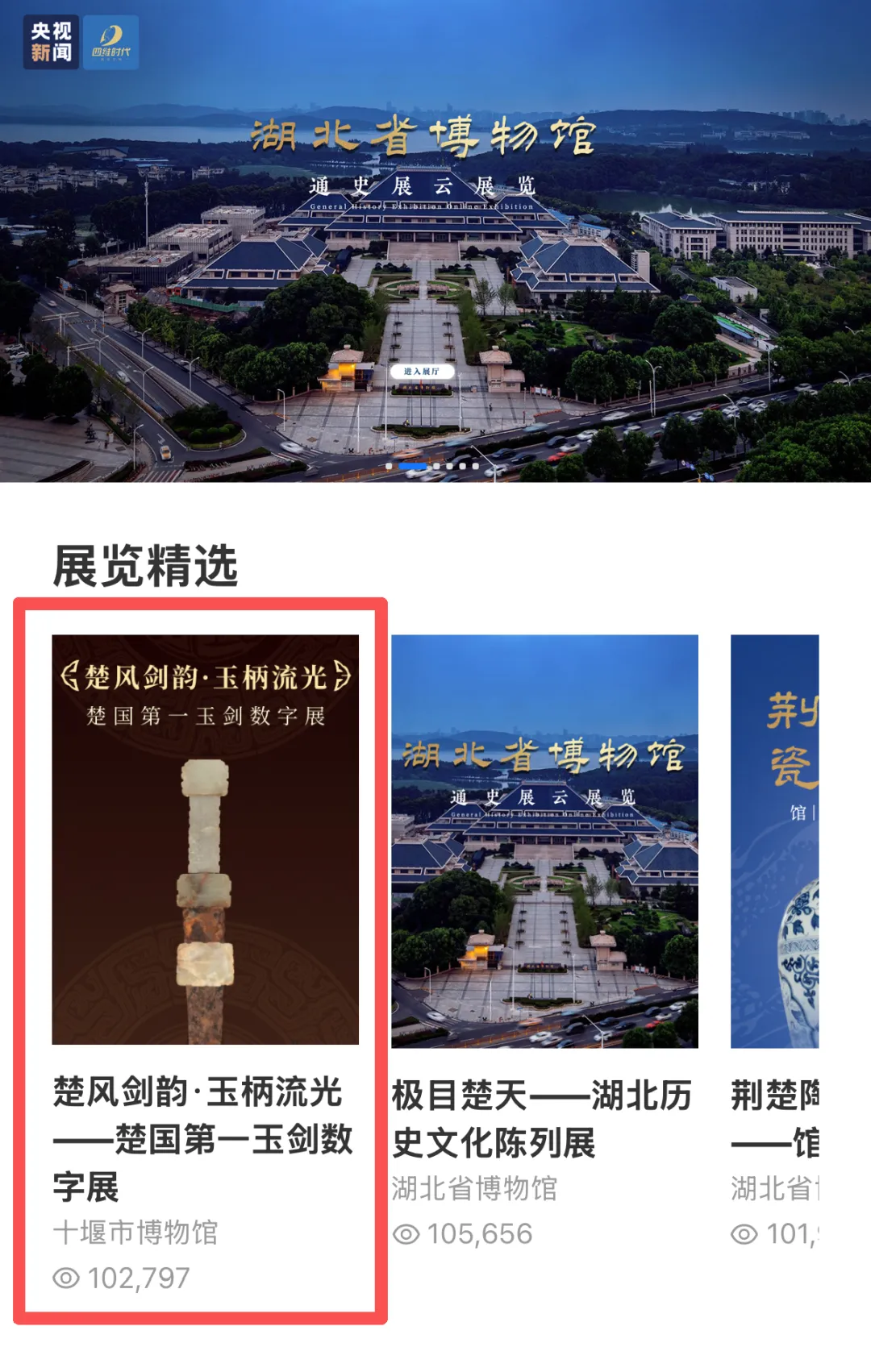 近日,由十堰市精心策划打造的“楚风剑韵·玉柄流光——楚国第一玉剑数字展”正式登陆央视新闻APP,在“文博”专栏的“博物中国 | 一键开启云上探索之旅” 核心专区中精彩亮相。一经上线,便快速吸引了大量文博爱好者与线上游客的目光,展览点击量迅速突破十万,访问数据持续攀升,成为“博物中国”专题中备受瞩目的热点内容,彰显了高品质地方文化数字产品在国家级平台上的强大吸引力。