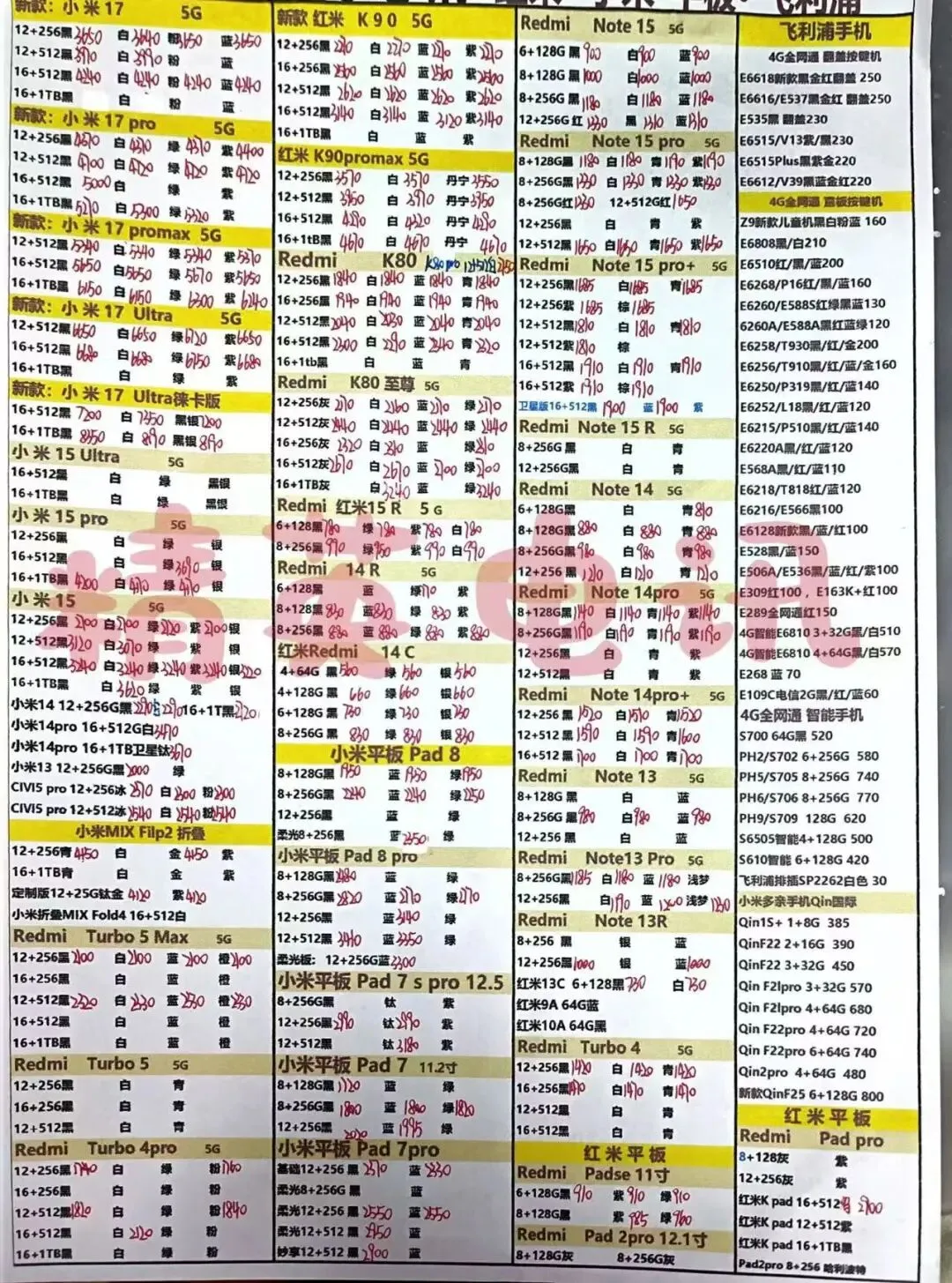 以下报价都是深圳华强北手机批发市场当天的最新批发价格(不含税),报价是我们的批发底价,零售拿货价格需加20~100元不等,京东包邮(量大价格可谈)